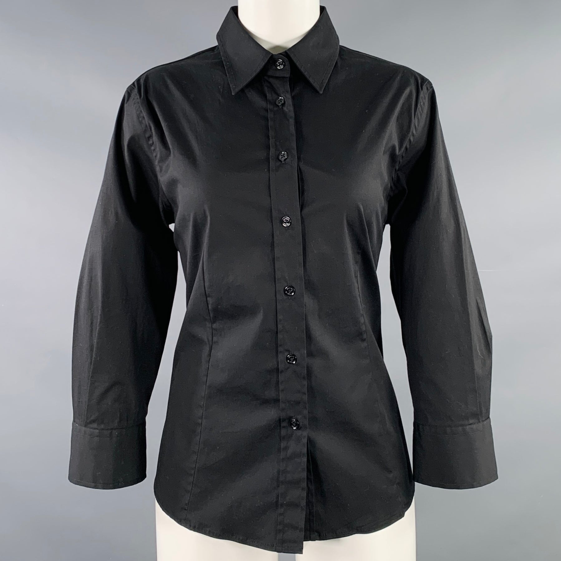 CAROLINA HERRERA Size 8 Black Cotton Spread Collar Shirt