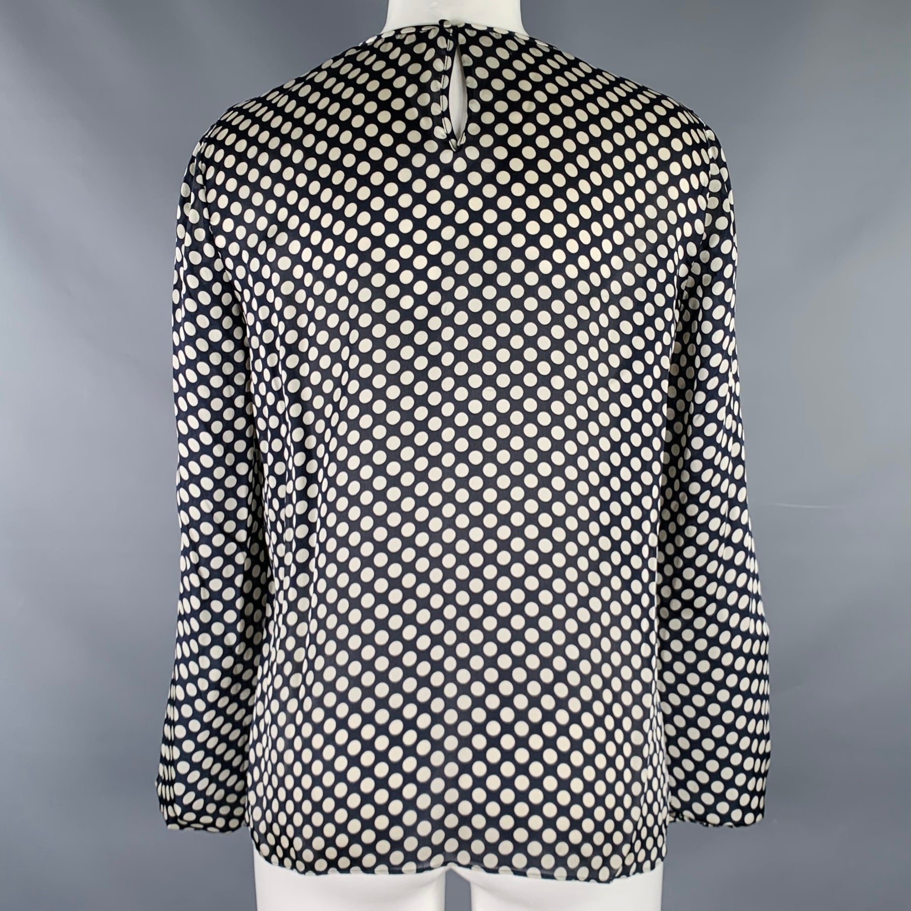 CAROLINA HERRERA Size 8 Black Ivory Silk Polka Dot Pop Over Blouse