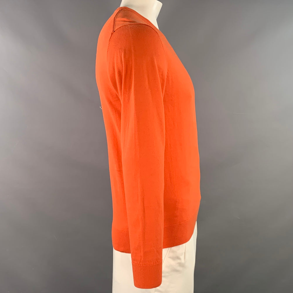 CAROLINA HERRERA Size M Orange Cotton V-Neck Pullover