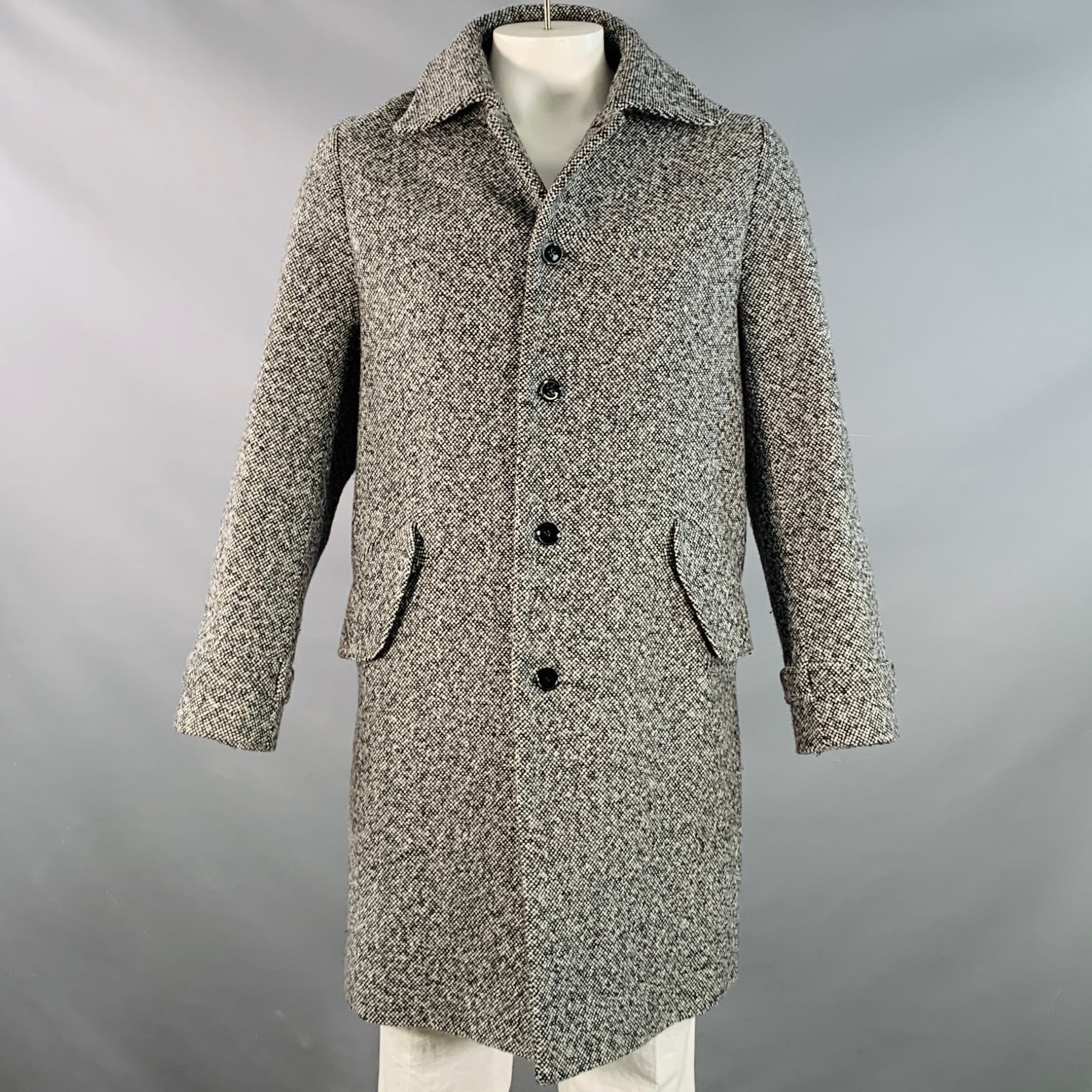 CARVEN Size 42 Grey Black Tweed Wool Blend Single Breasted Flap Pockets Coat
