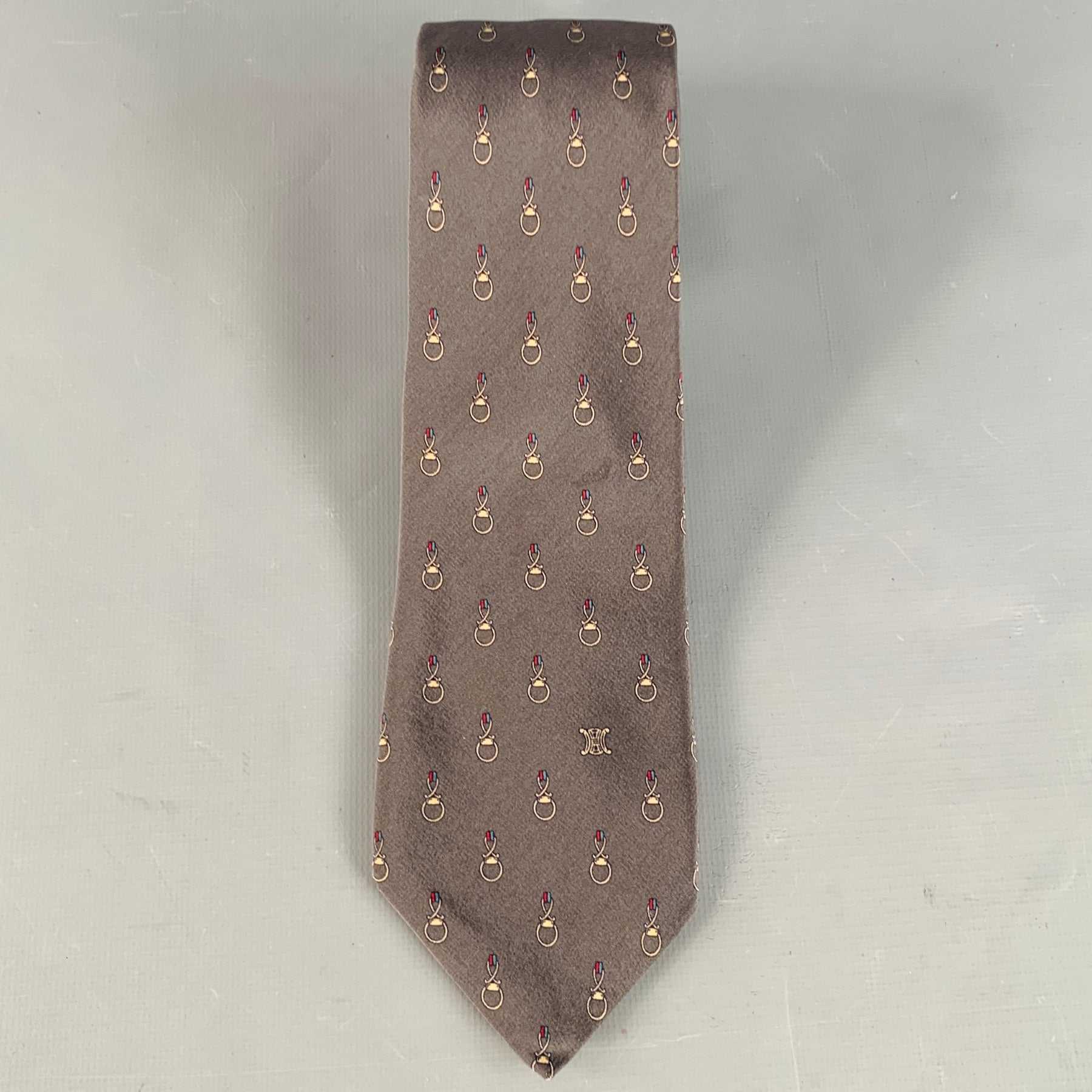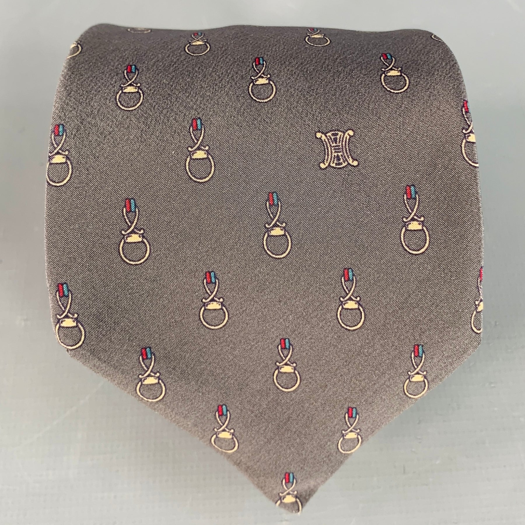 CELINE PARIS necktie in a charcoal grey silk featuring a gold tone equestrian pattern.