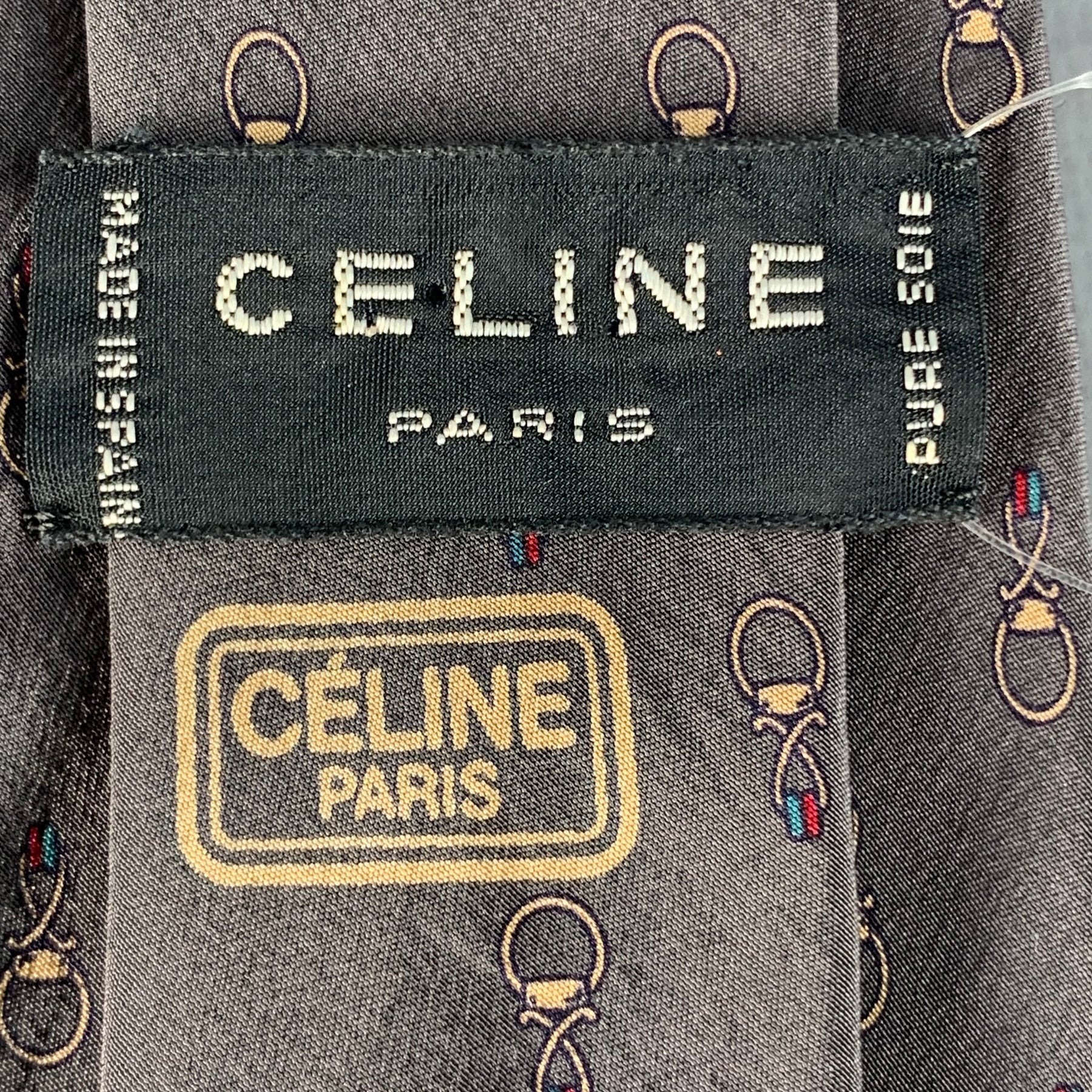 CELINE Charcoal Grey Gold Equestrian Silk Twill Tie