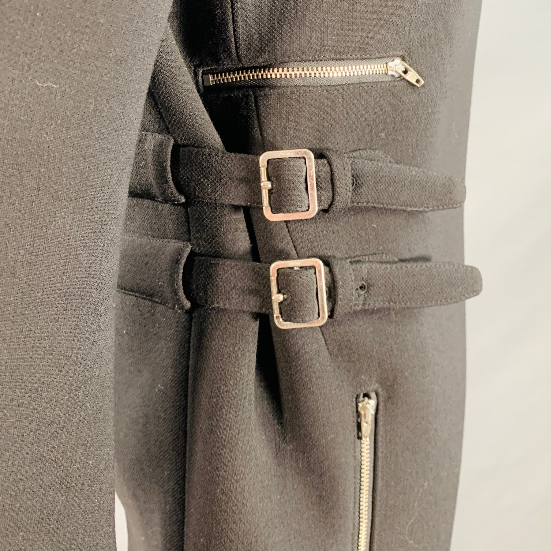 CELINE Size 4 Black Wool Zippers Detail Bondage Coat