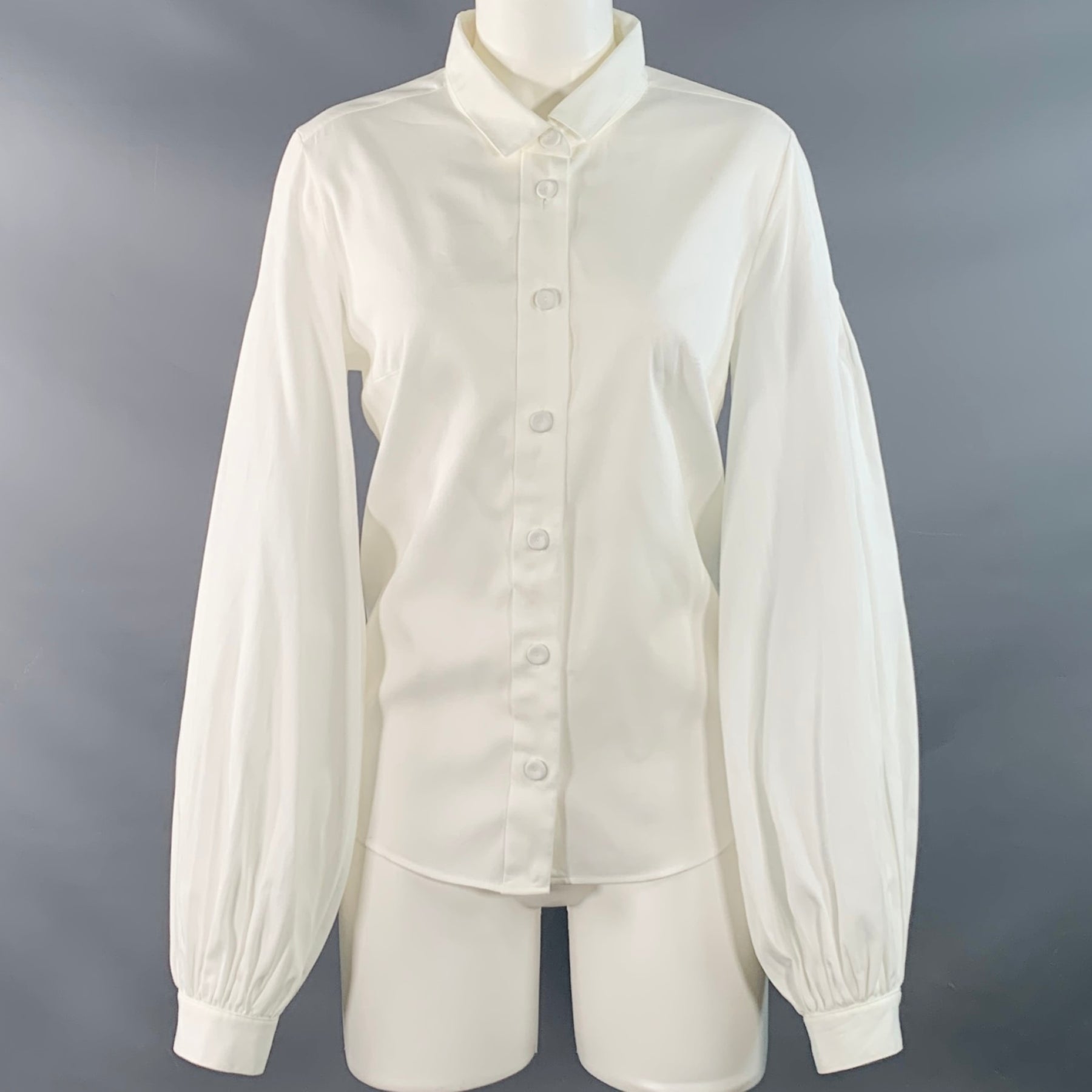 CHLOE Size 6 White Cotton Ribbed Long Sleeve Blouse