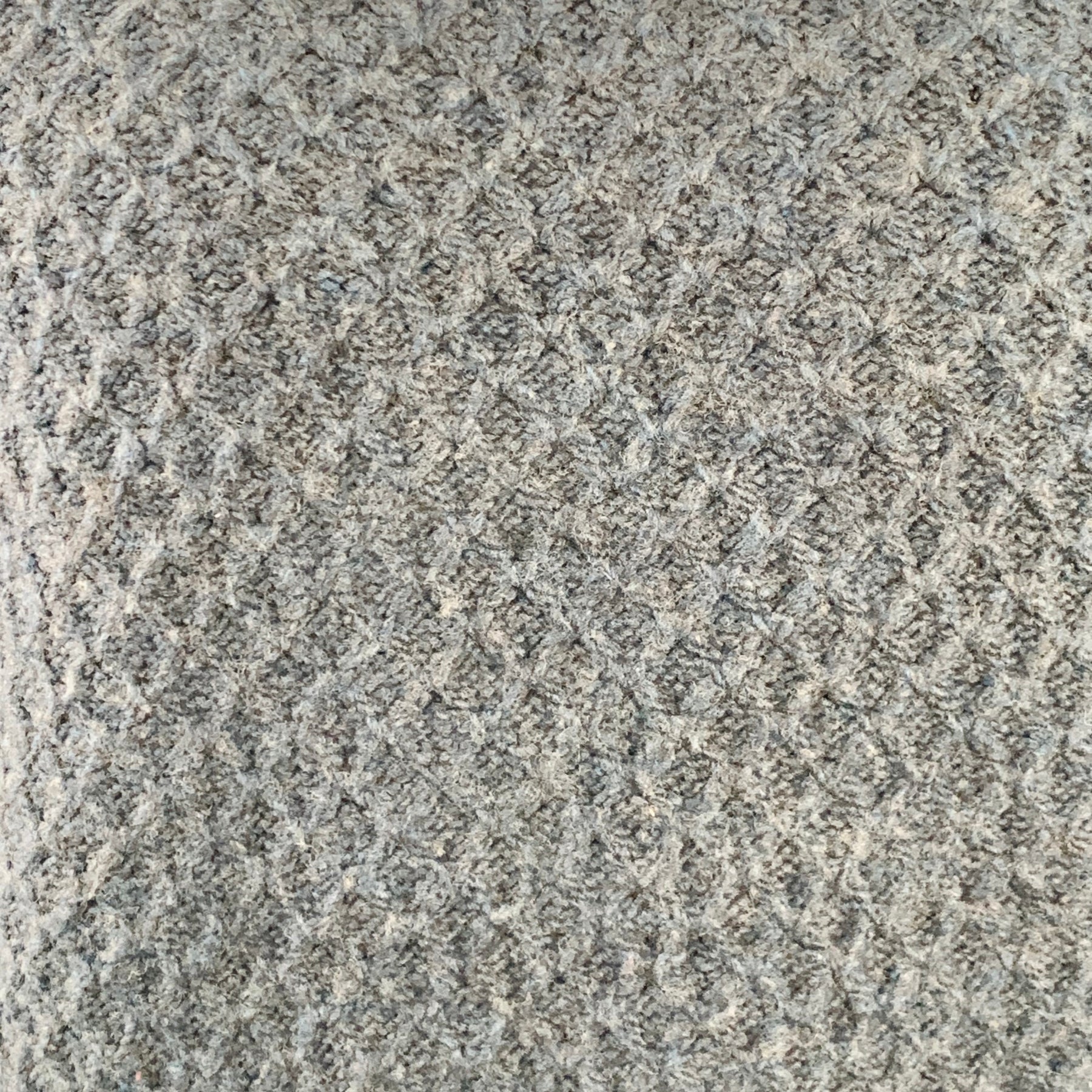 CIRCOLO sweater in a blue grey merino wool knit featuring a diamond cable knit pattern, long sleeves, and crew neck.