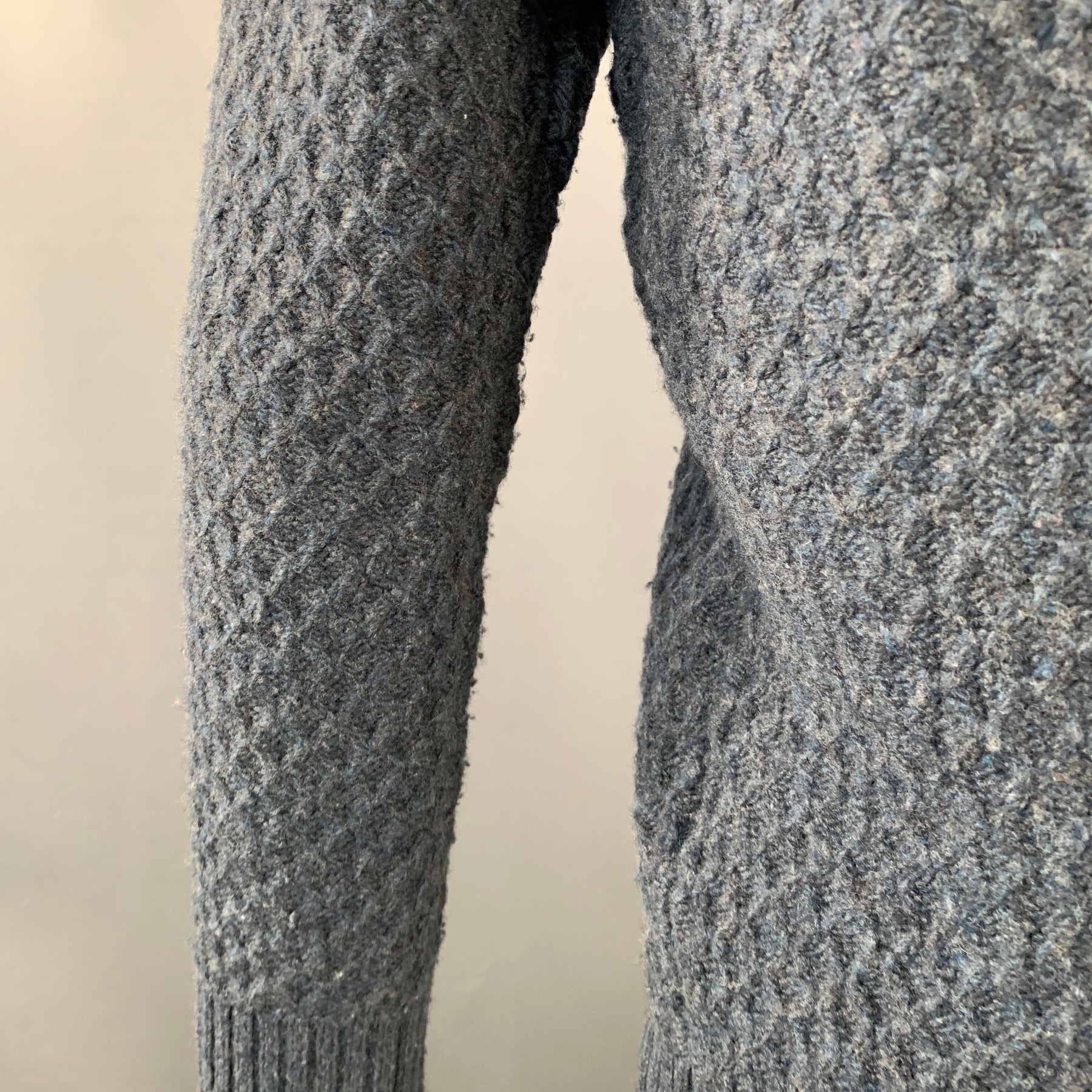 CIRCOLO Size M Blue Grey Diamond Cable Knit Merino Wool Crew Neck Sweater