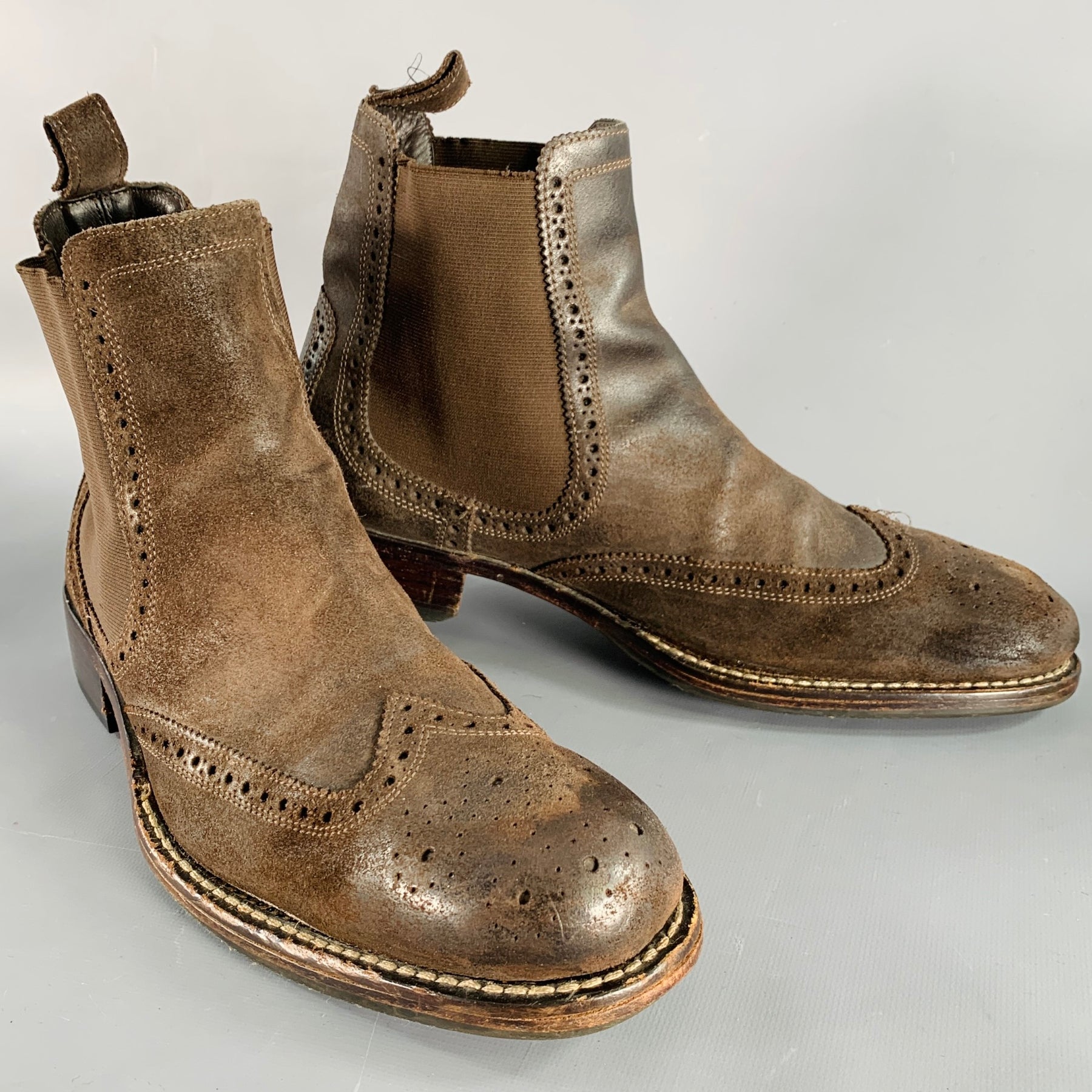 COLE HAAN Size 9 Brown Perforated Suede Chelsea Boots
