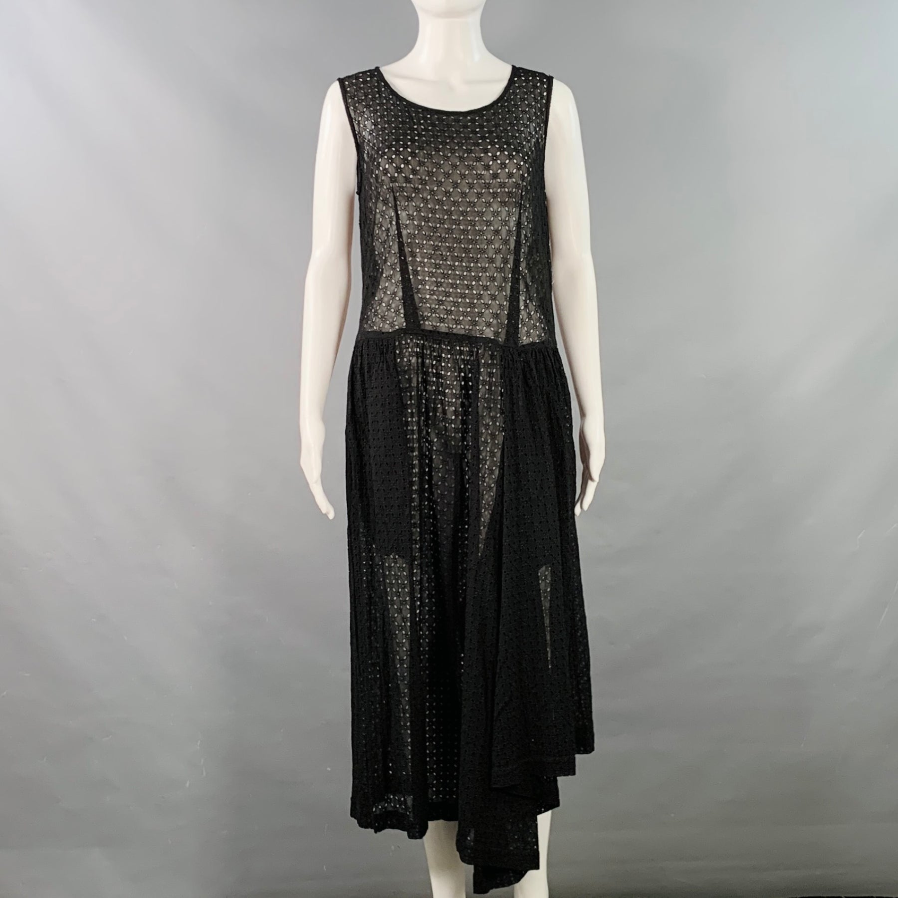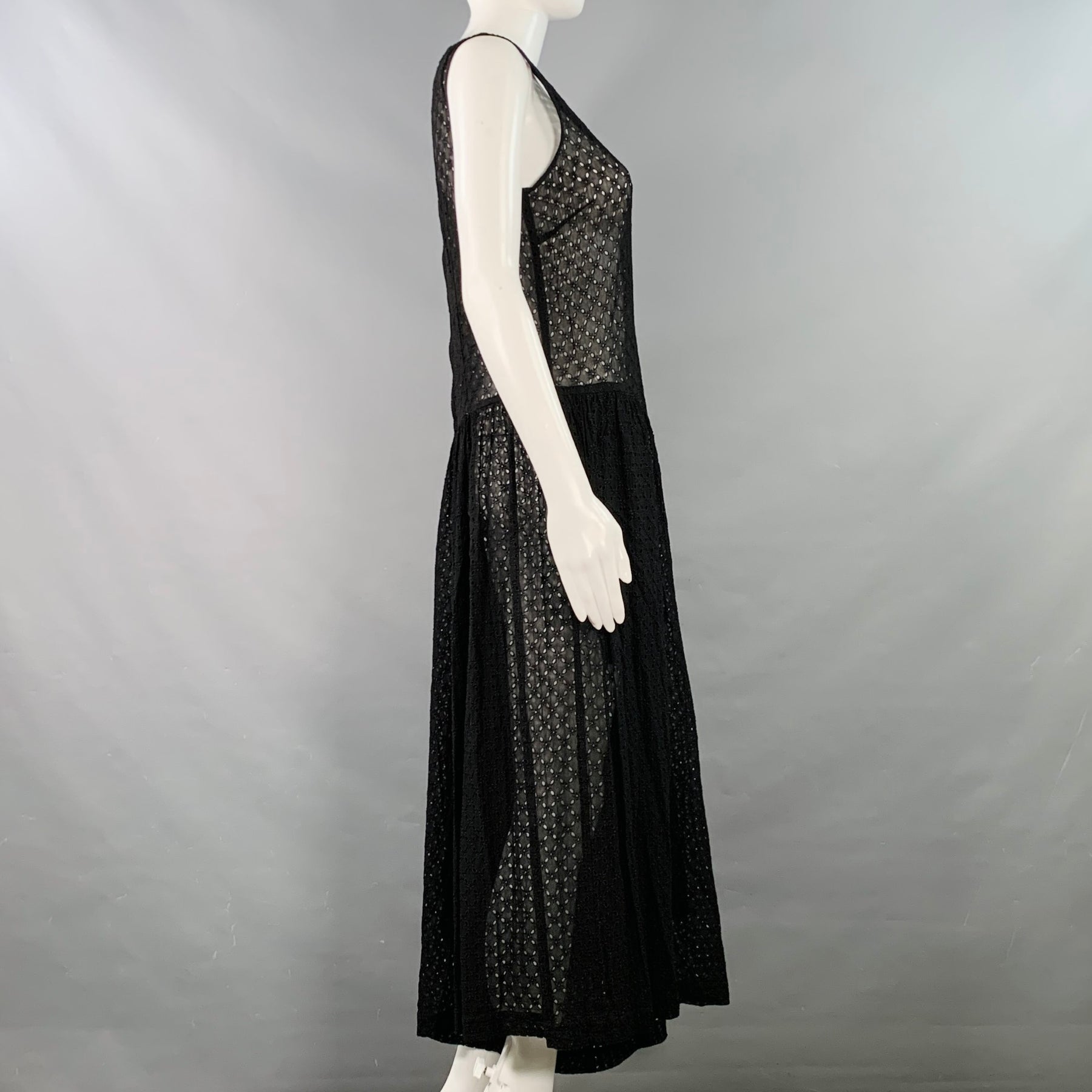 COMME des GARCONS 2012 Size S Black Cupro Eyelet Asymmetrical Wide Leg Jumpsuit