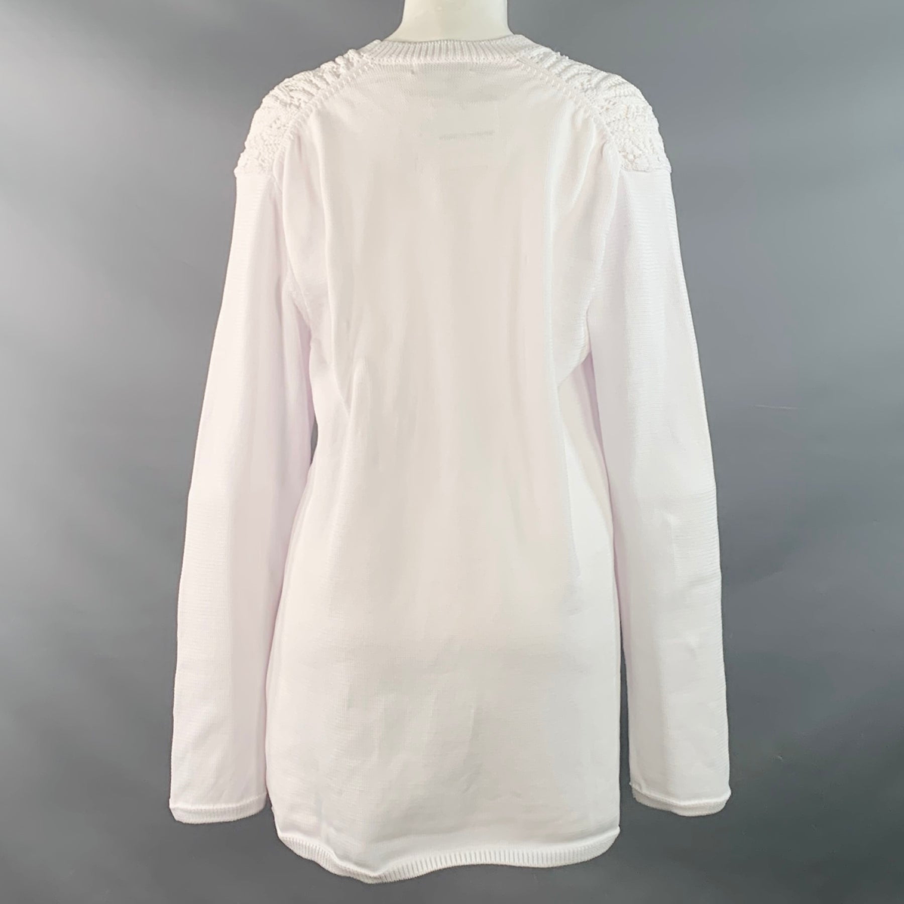 COMME des GARCONS 2022 Size M White Cable Knit Polyester Crew Neck Sweater