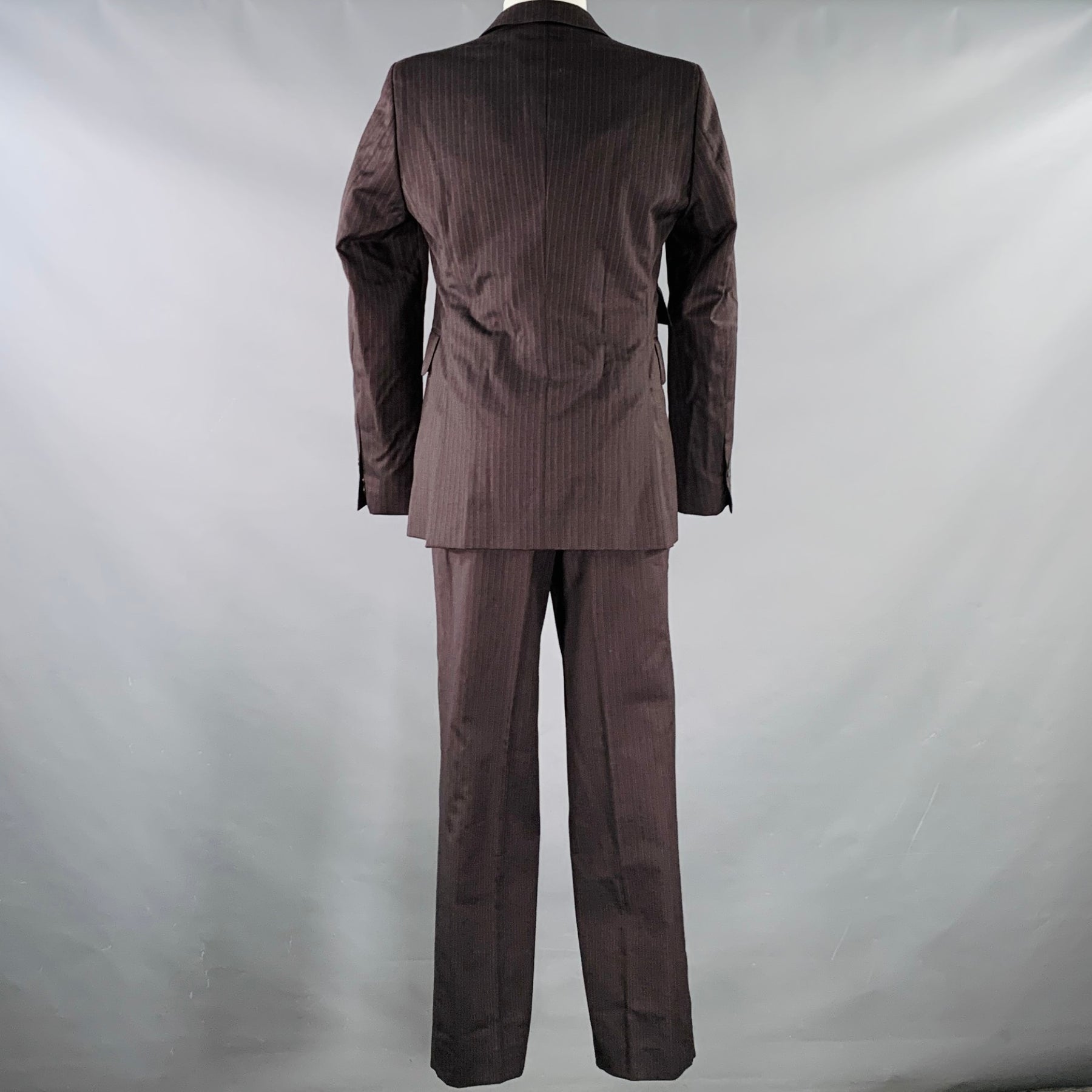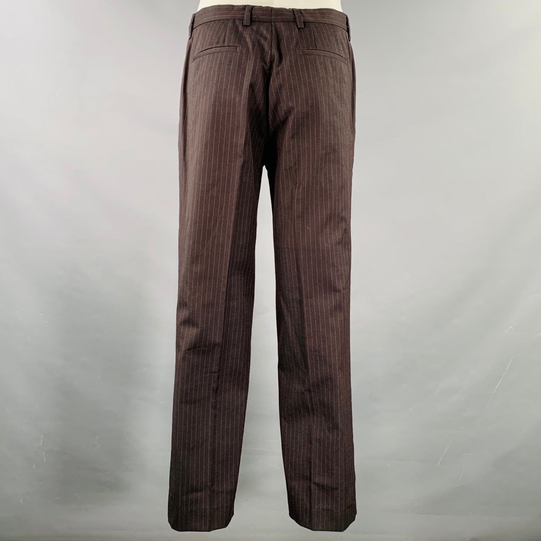 CoSTUME NATIONAL Size 38 Brown Grey Pinstripe Wool Single Button Suit