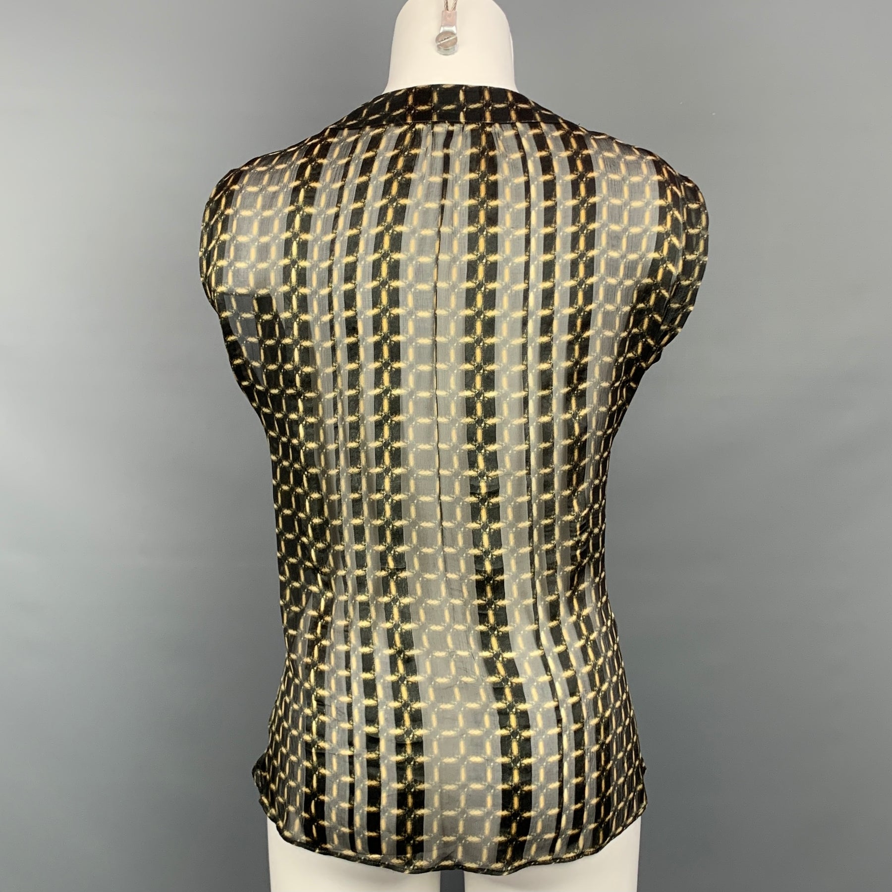 DEREK LAM Size 0 Black & Gold Windowpane Silk Draped V-neck Blouse