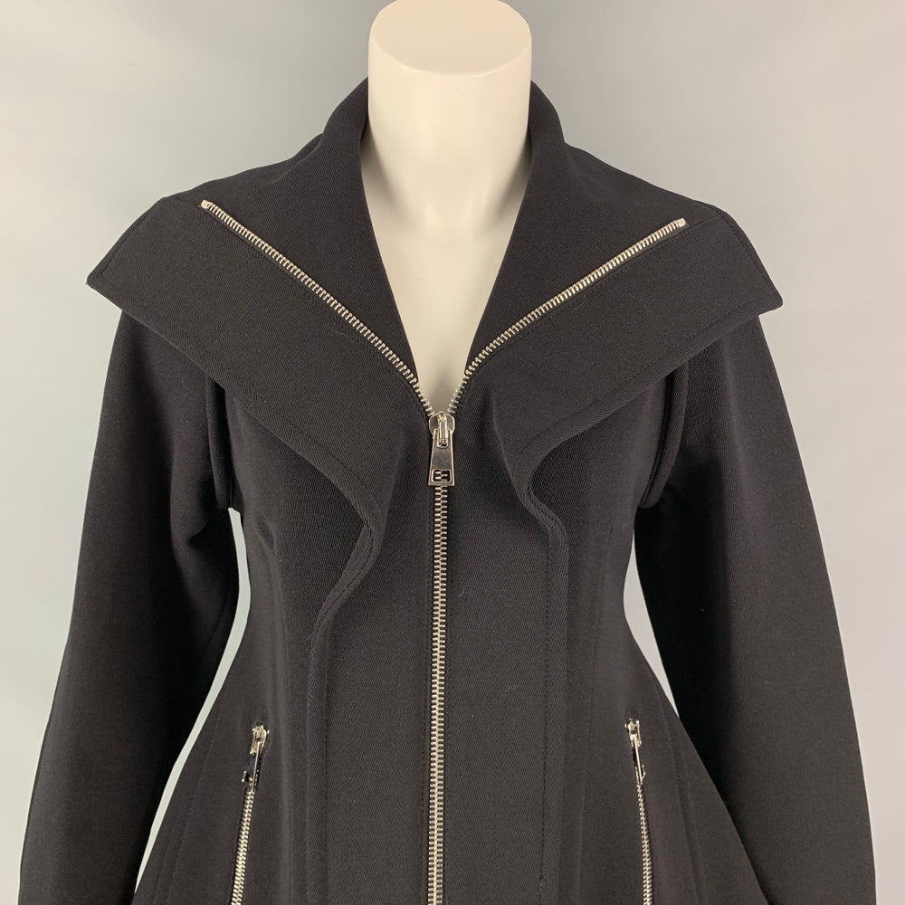 DEREK LAM Size 4 Black Acrylic Blend High Collar Coat
