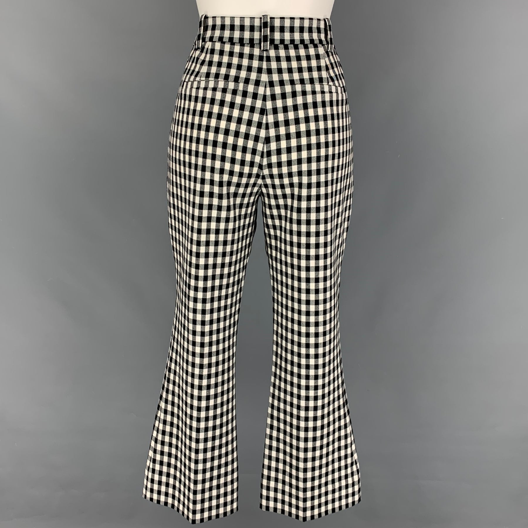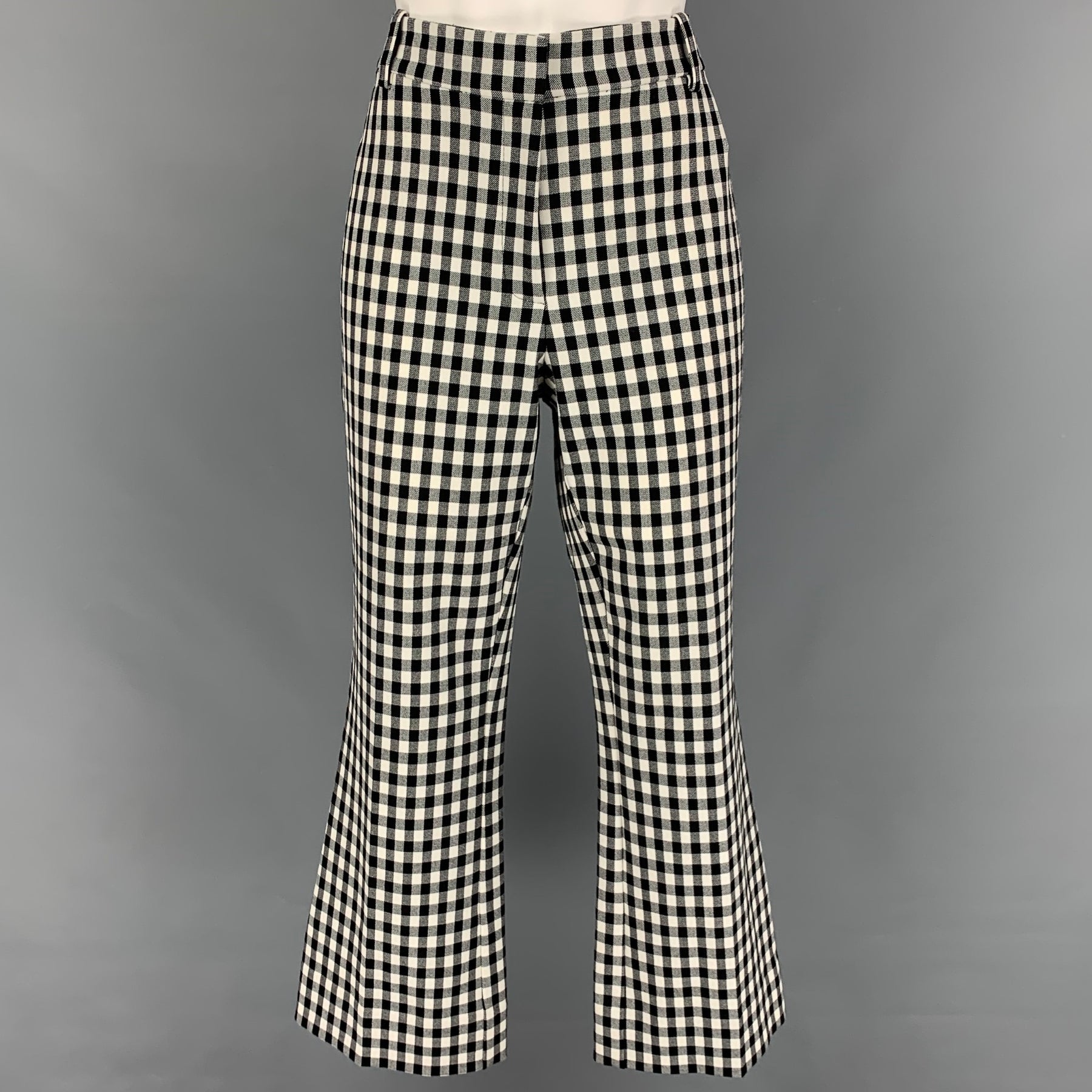 DEREK LAM pants comes in a black & white gingham polyester blend featuring a cropped style, front tab, and a zip fly closure.