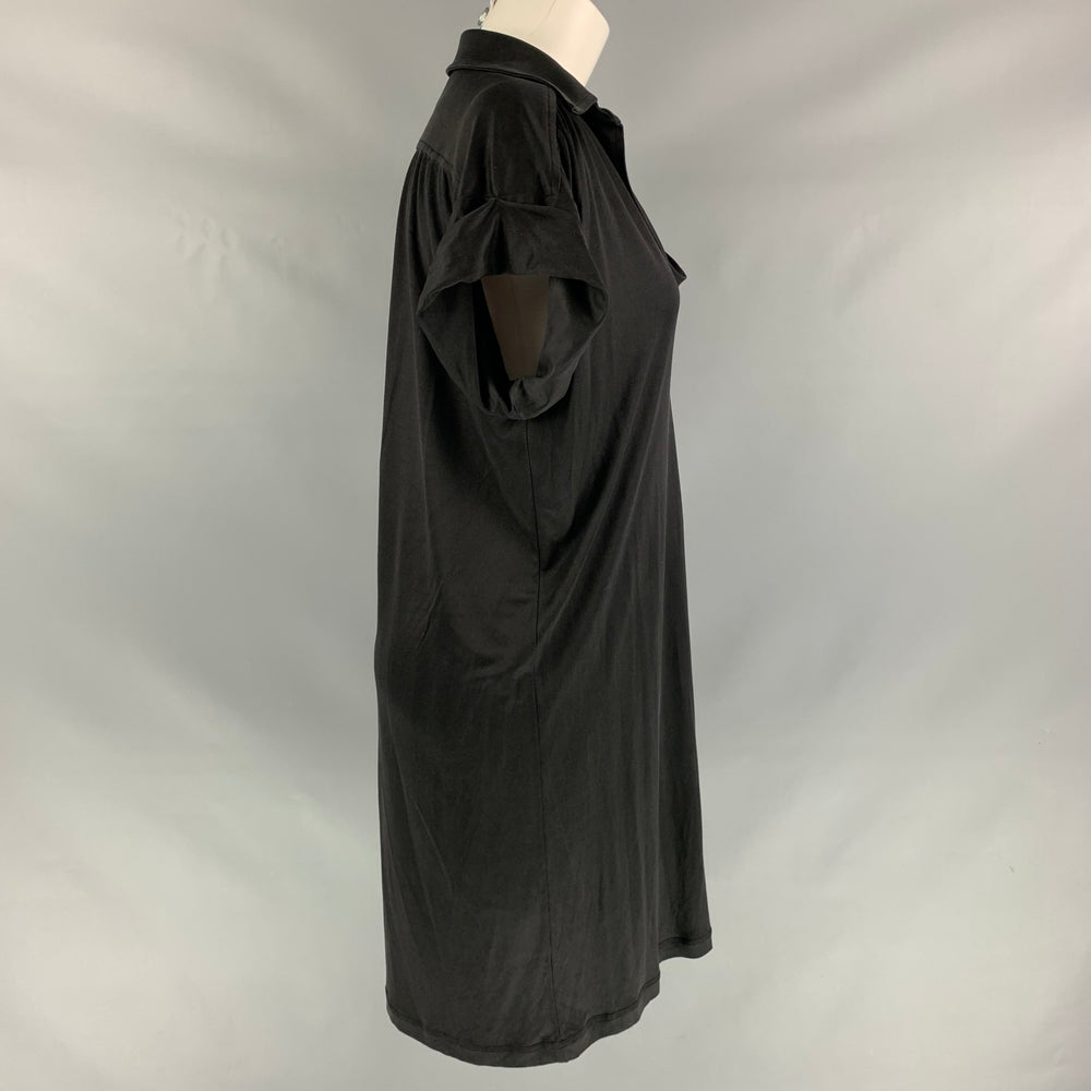 DEREK LAM V-neck t-shirt, bellow knee dress comes in black silk. Made in Italy.