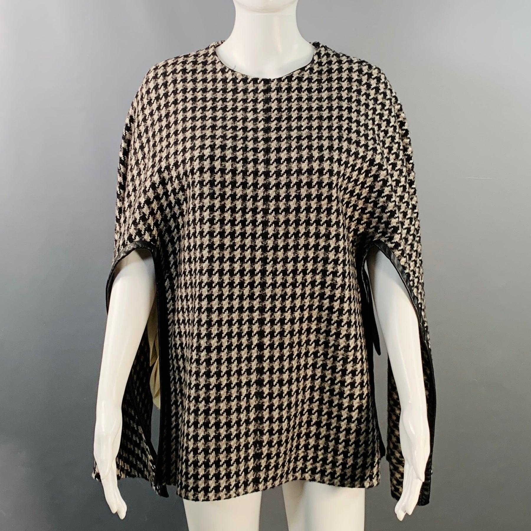DEREK LAM Size XS/S Black Beige Wool Alpaca Houndstooth Poncho Pullover