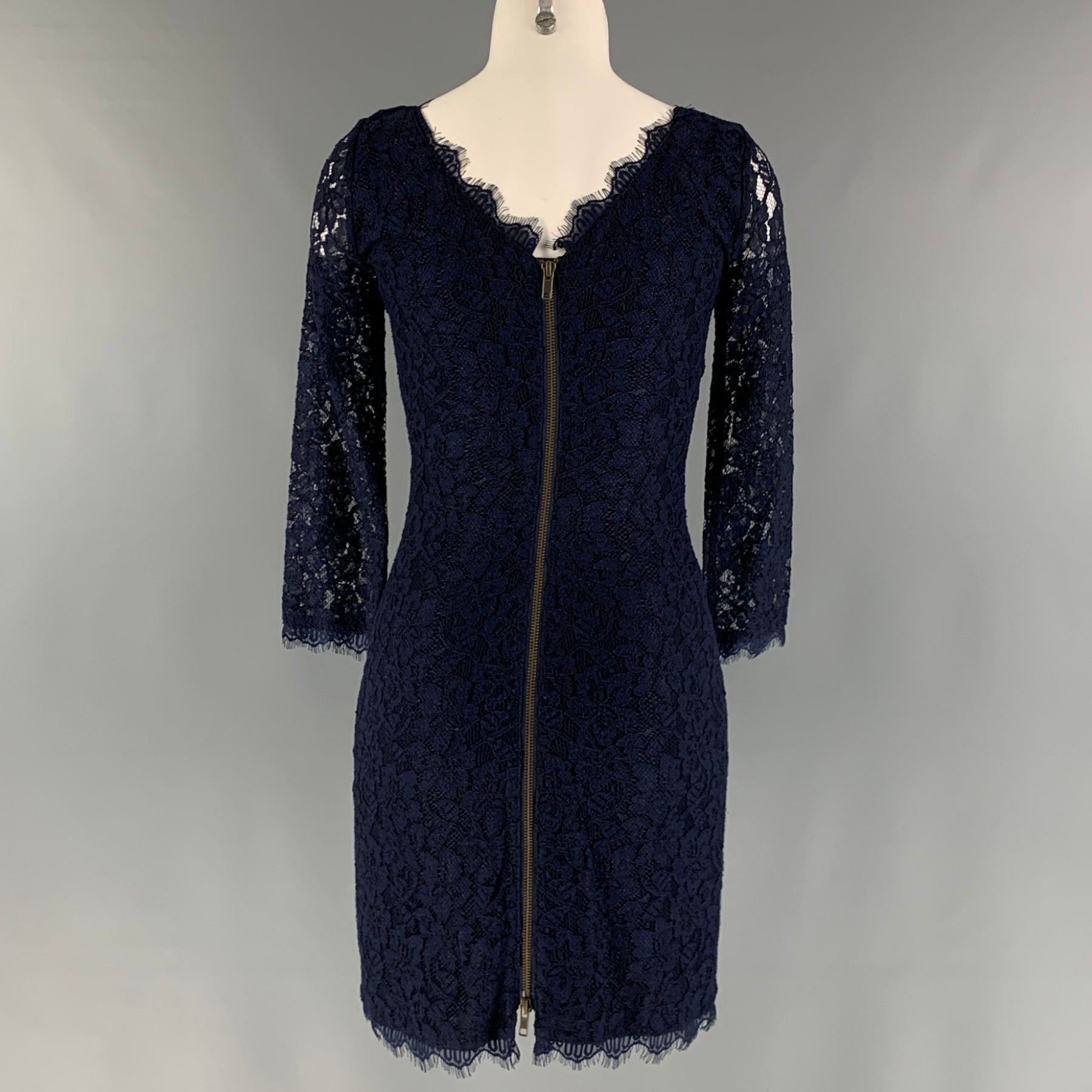 DIANE VON FURSTENBERG Size 0 Navy Rayon Blend 3/4 Sleeves Dress