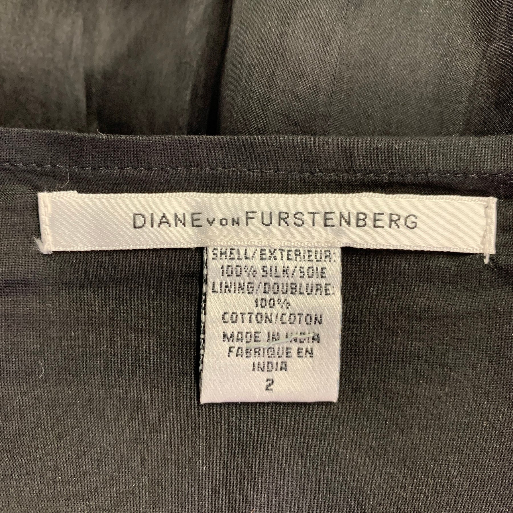 DIANE VON FURSTENBERG Size 2 Black Beige Silk Embroidered Pleated Skirt