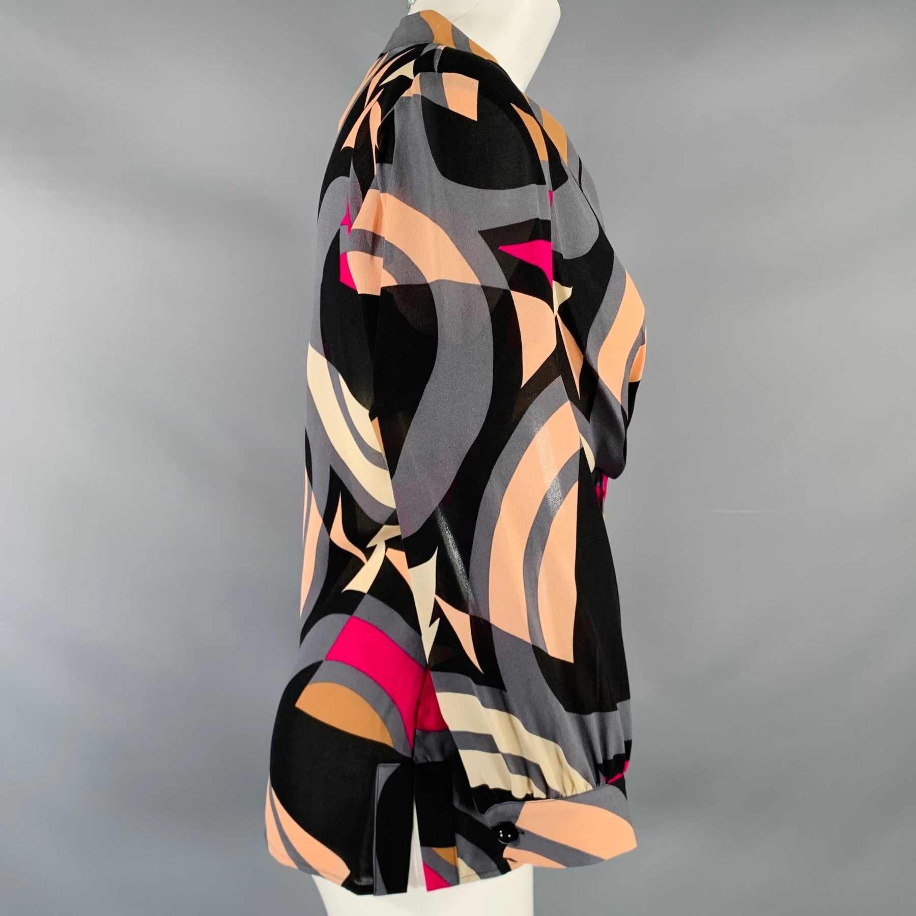 DIANE VON FURSTENBERG blouse in a multi-color silk fabric featuring an abstract print, ruched style, and V-neck.