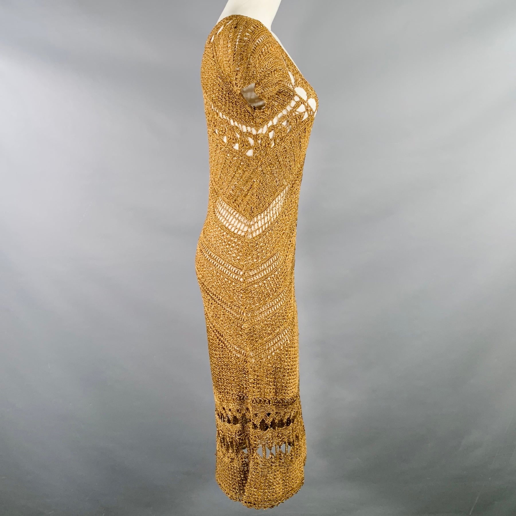 DIANE VON FURSTENBERG Size M Gold Acetate Blend Crochet Dress