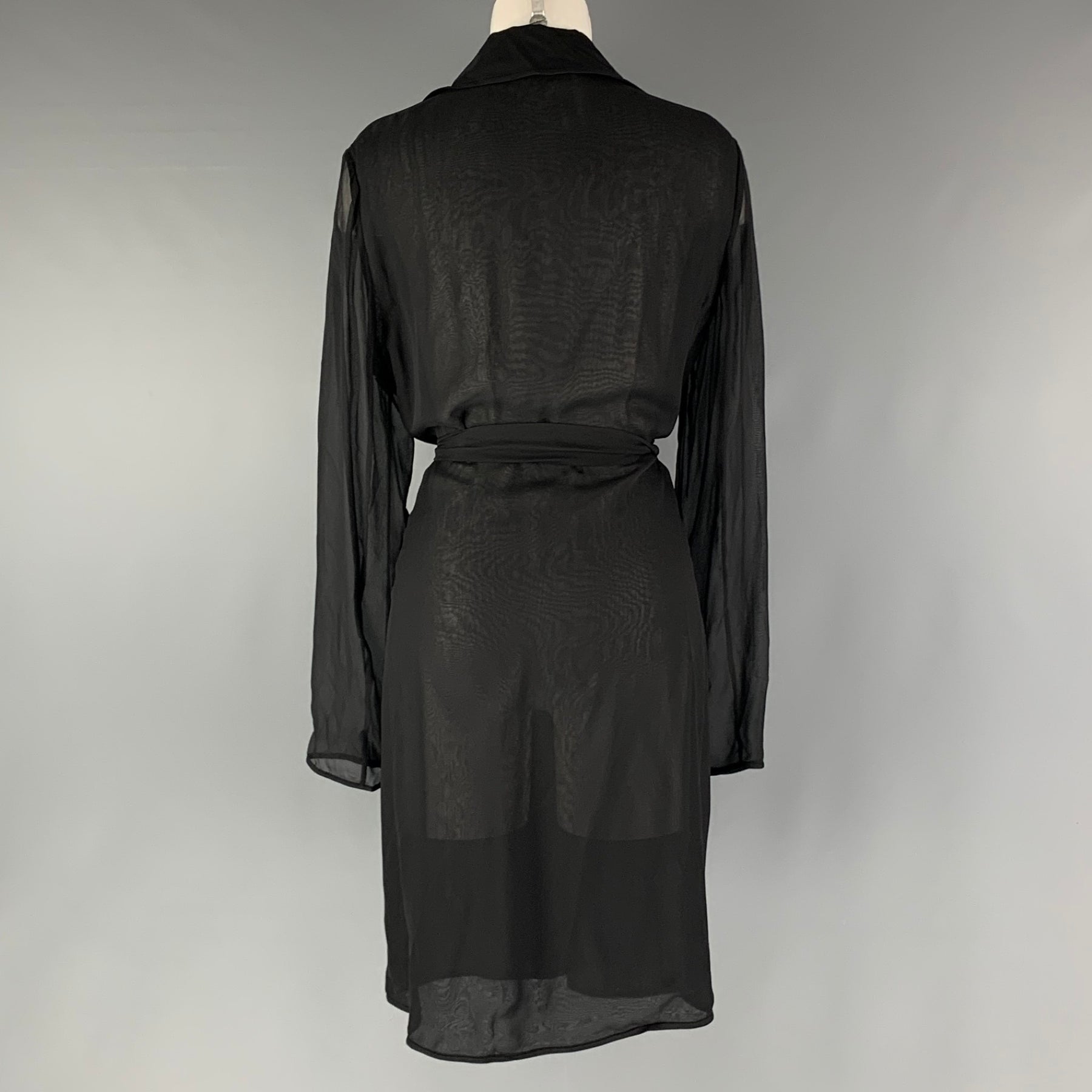 DIANE VON FURSTENBERG Size S Black See Through Belted Trench Coat