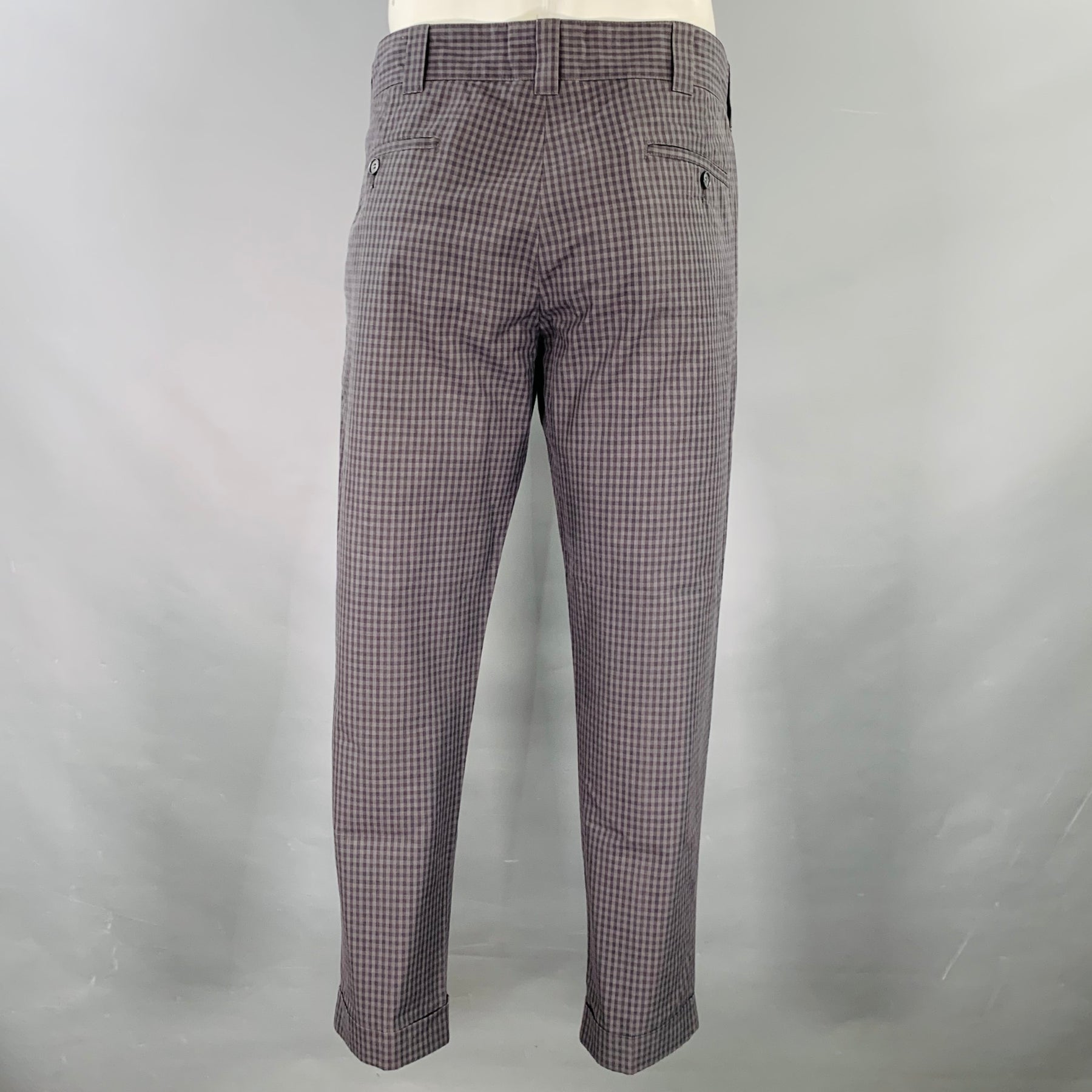 DOLCE & GABBANA Size 34 Grey Charcoal Checkered Cotton Cuffed Casual Pants