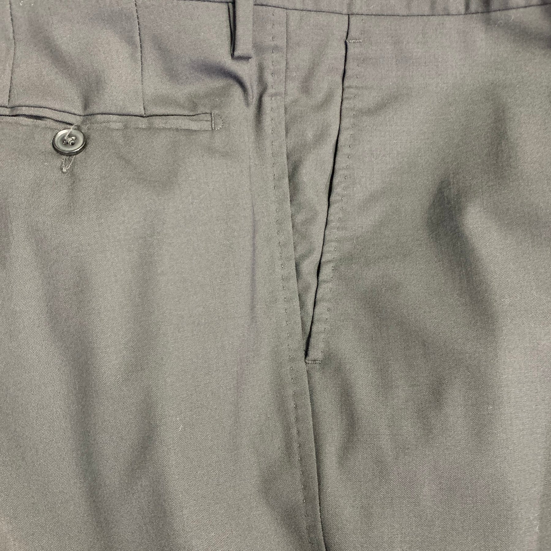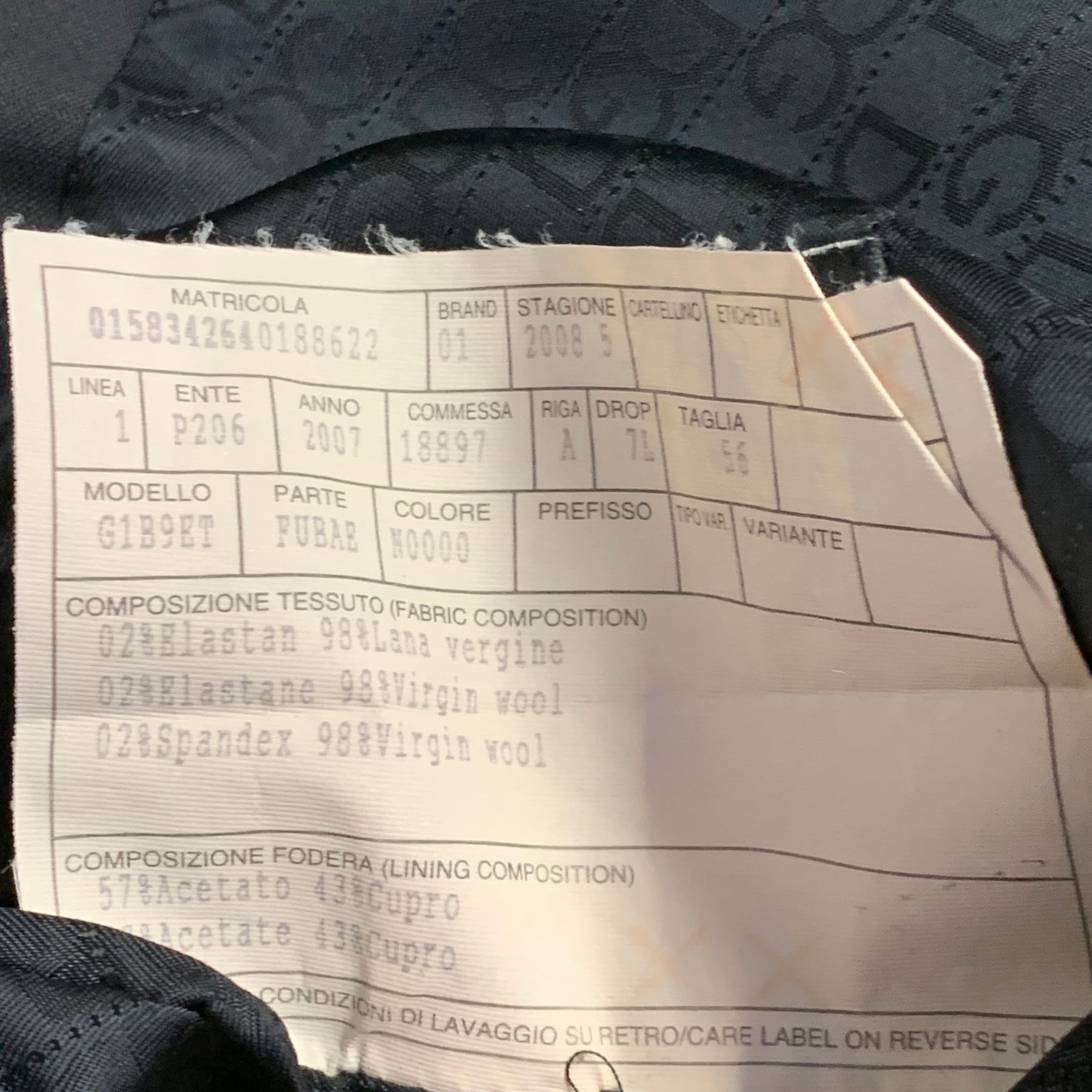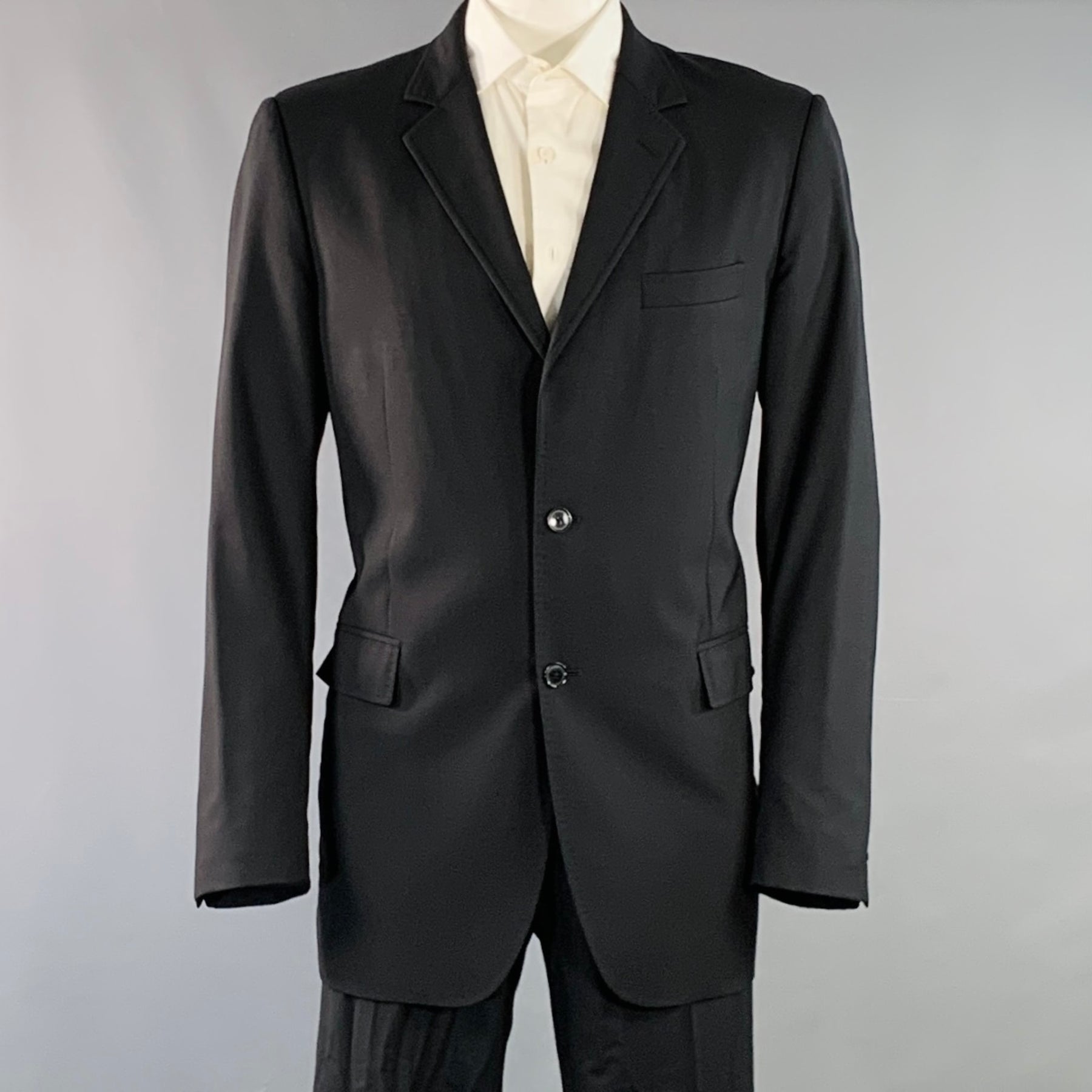 DOLCE & GABBANA suit in a black virgin wool blend with a full liner and includes a single breasted, double button sport coat with a notch lapel and matching flat front trousers. Made in Italy.