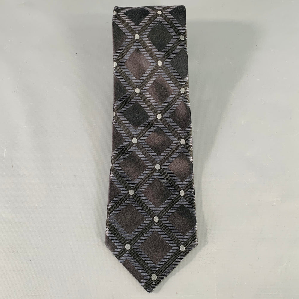 ERMENEGILDO ZEGNA Black Navy Geometric Jacquard Silk Tie