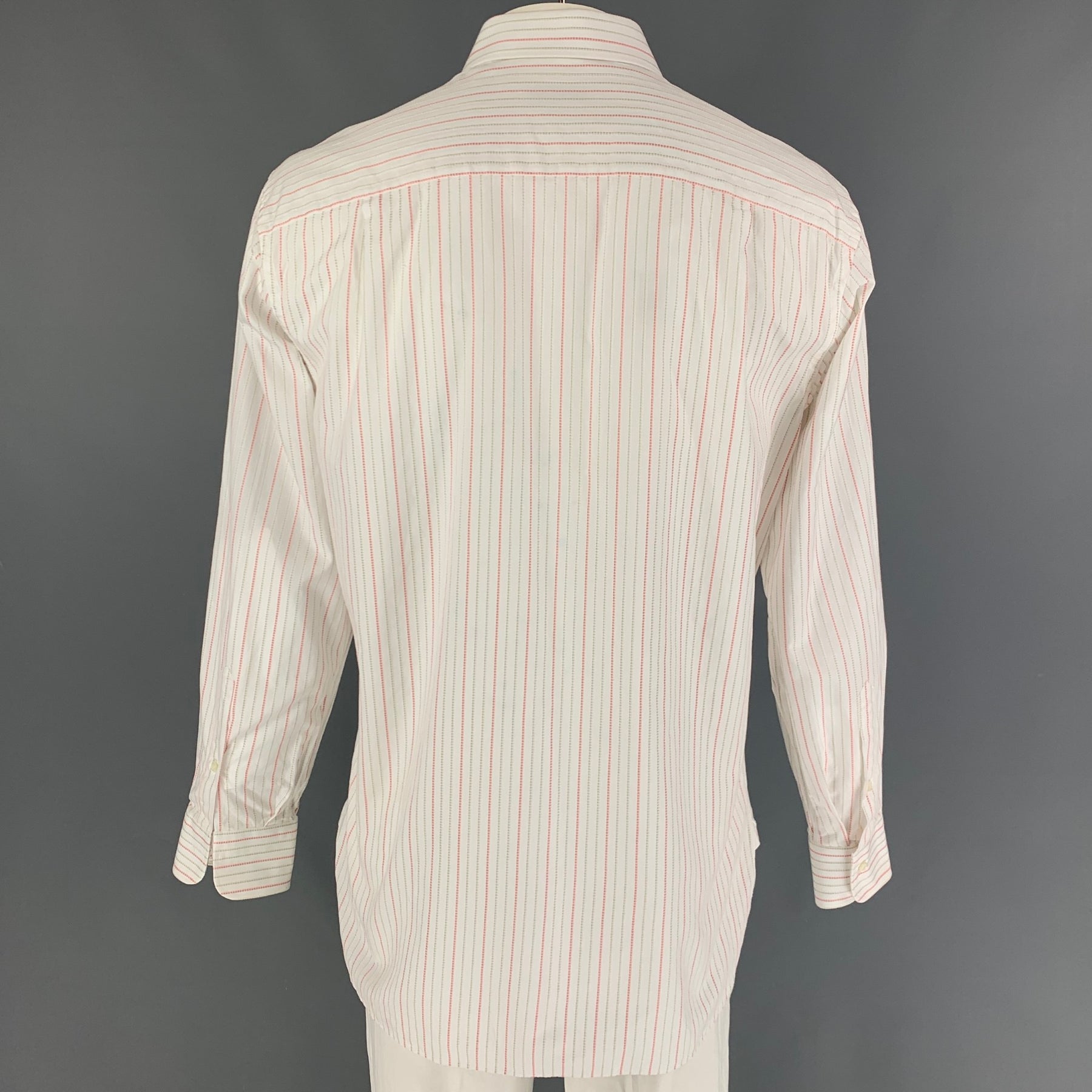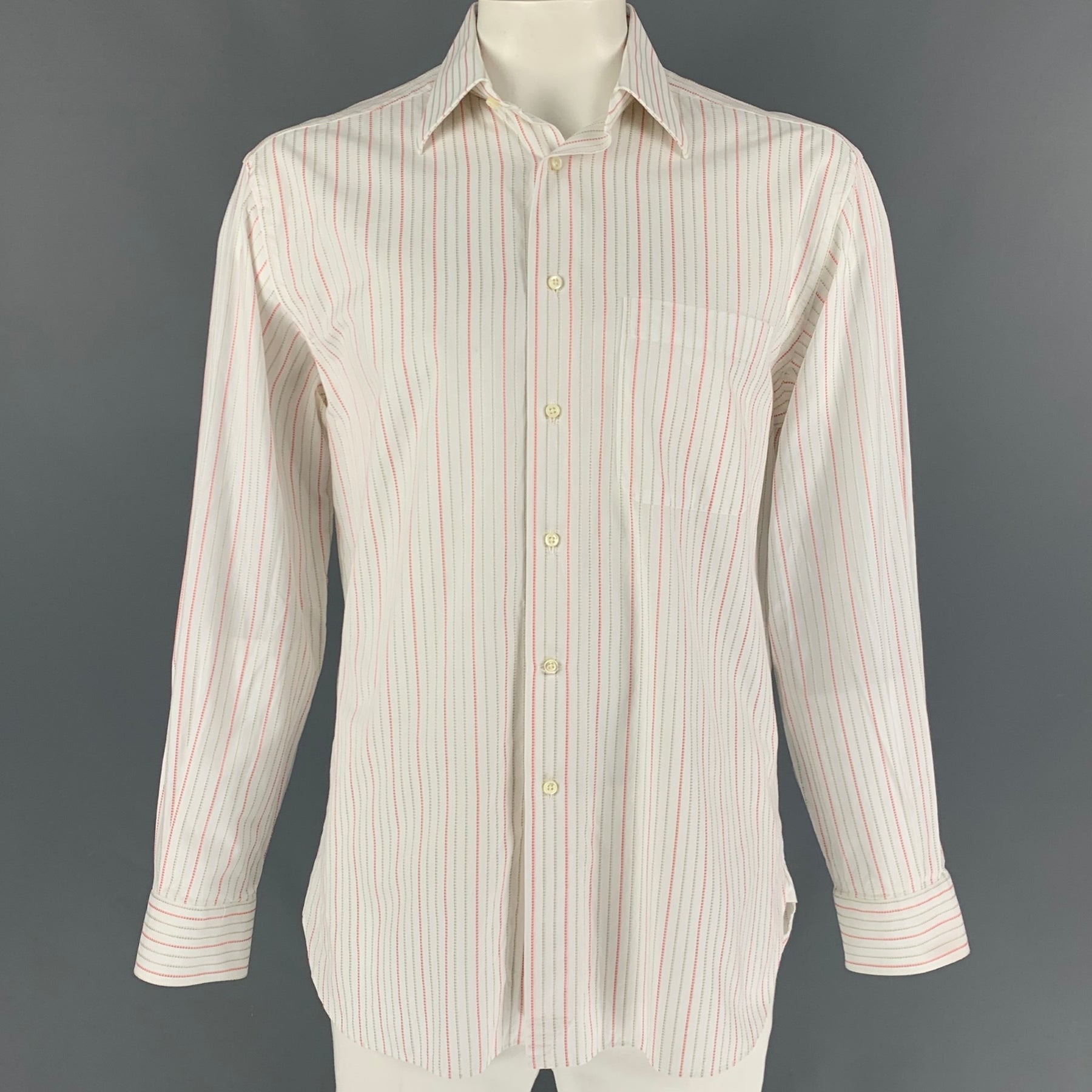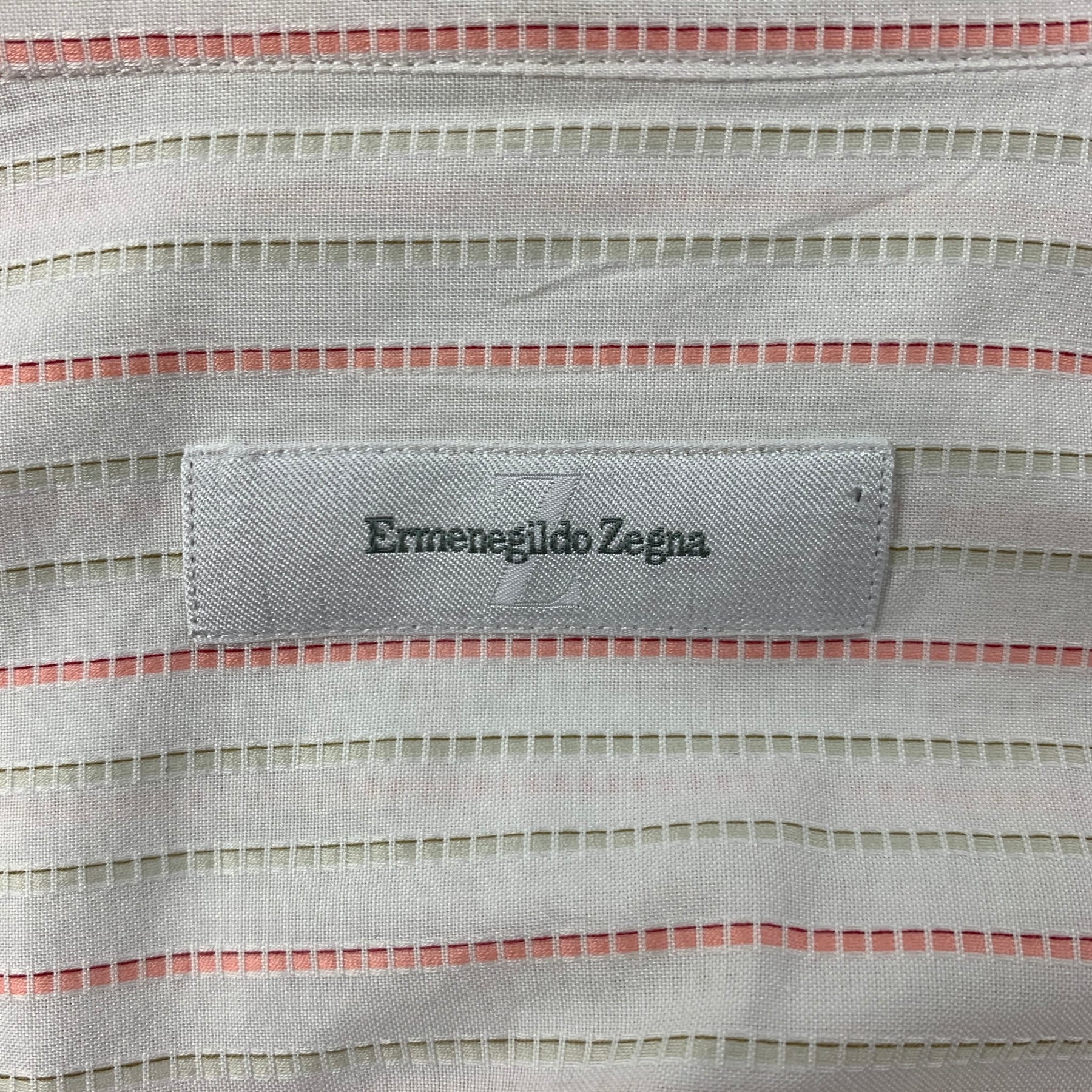 ERMENEGILDO ZEGNA Size L White Orange Stripe Cotton Long Sleeve Shirt