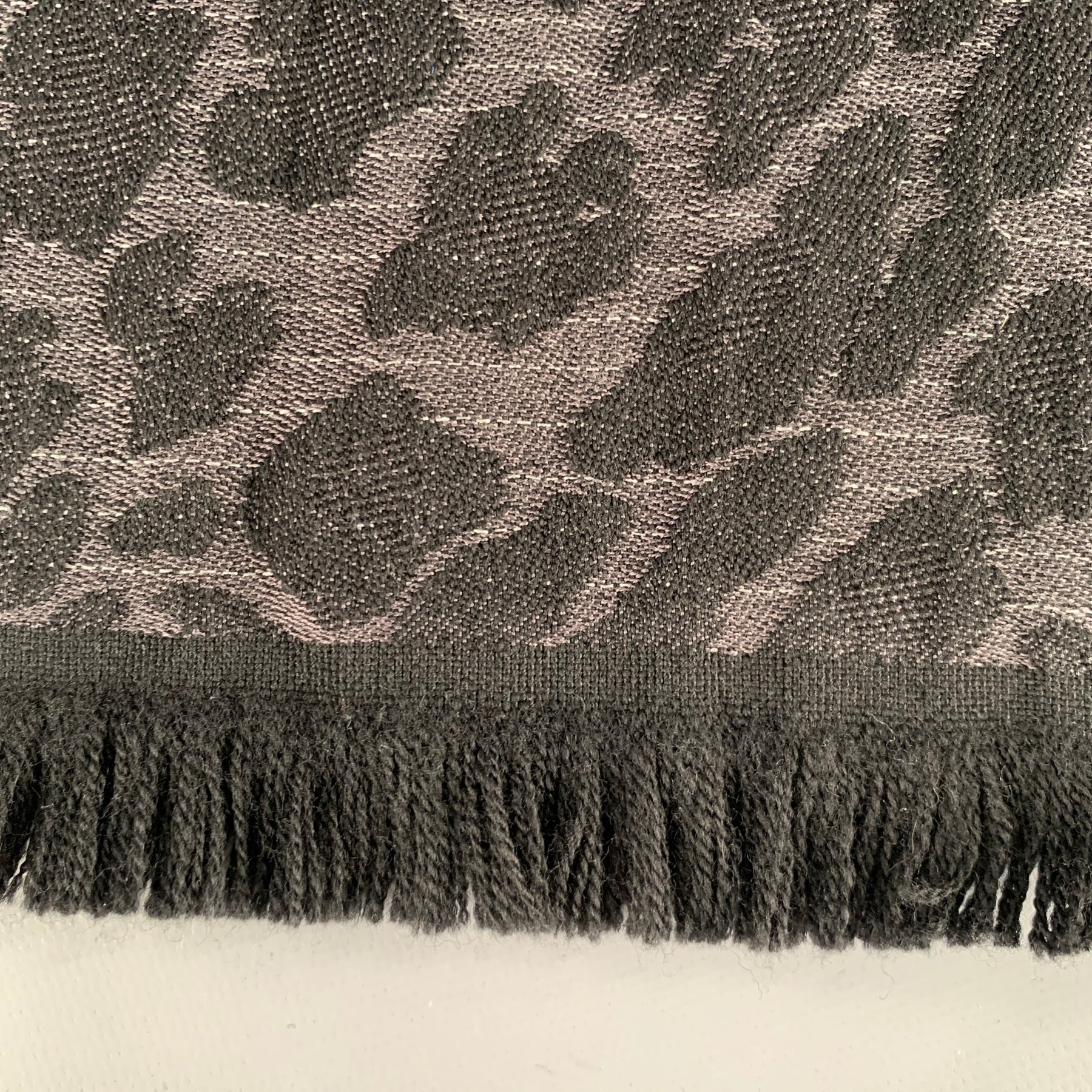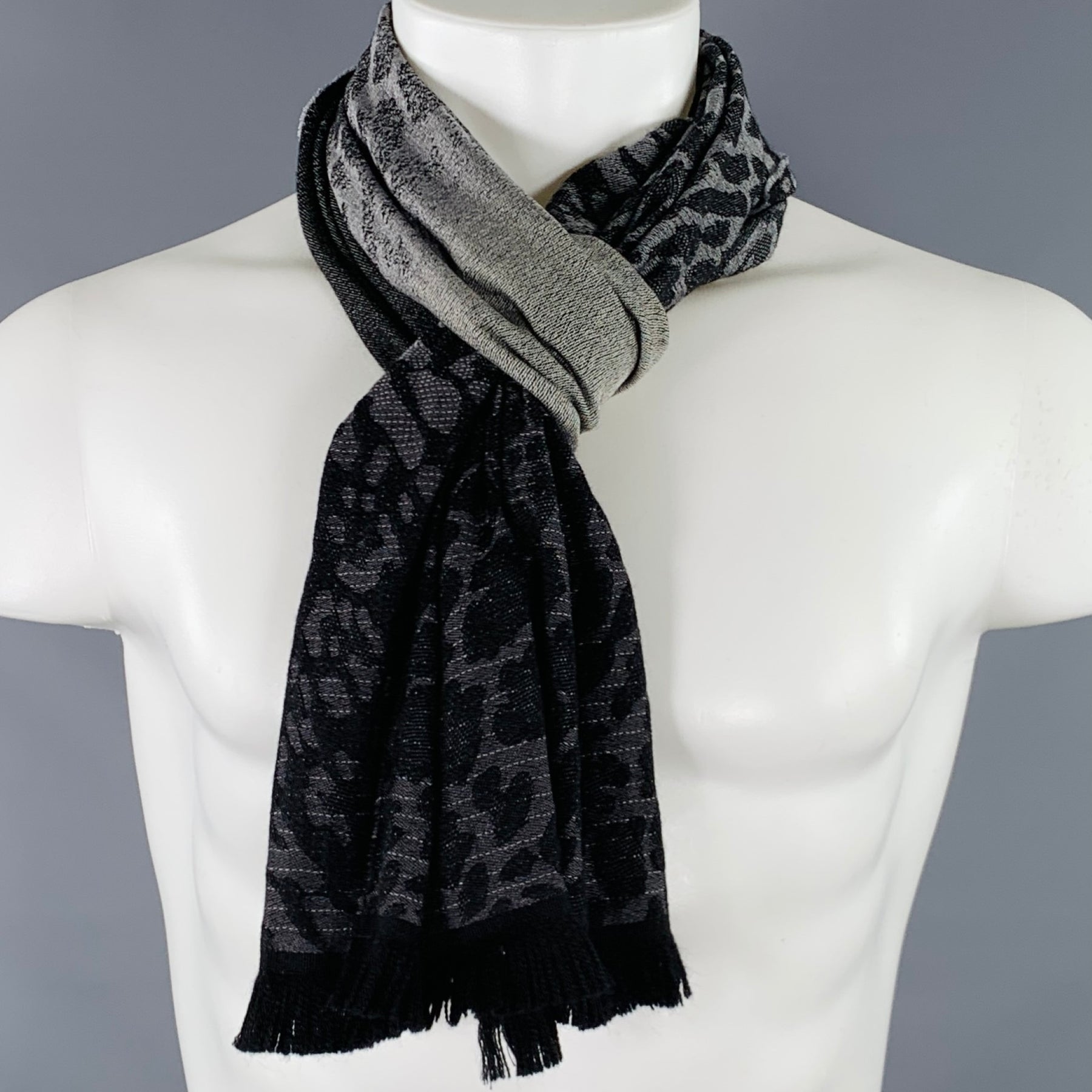 ESCADA SPORT scarf in a black and grey woven fabric featuring an animal print, and fringe details.