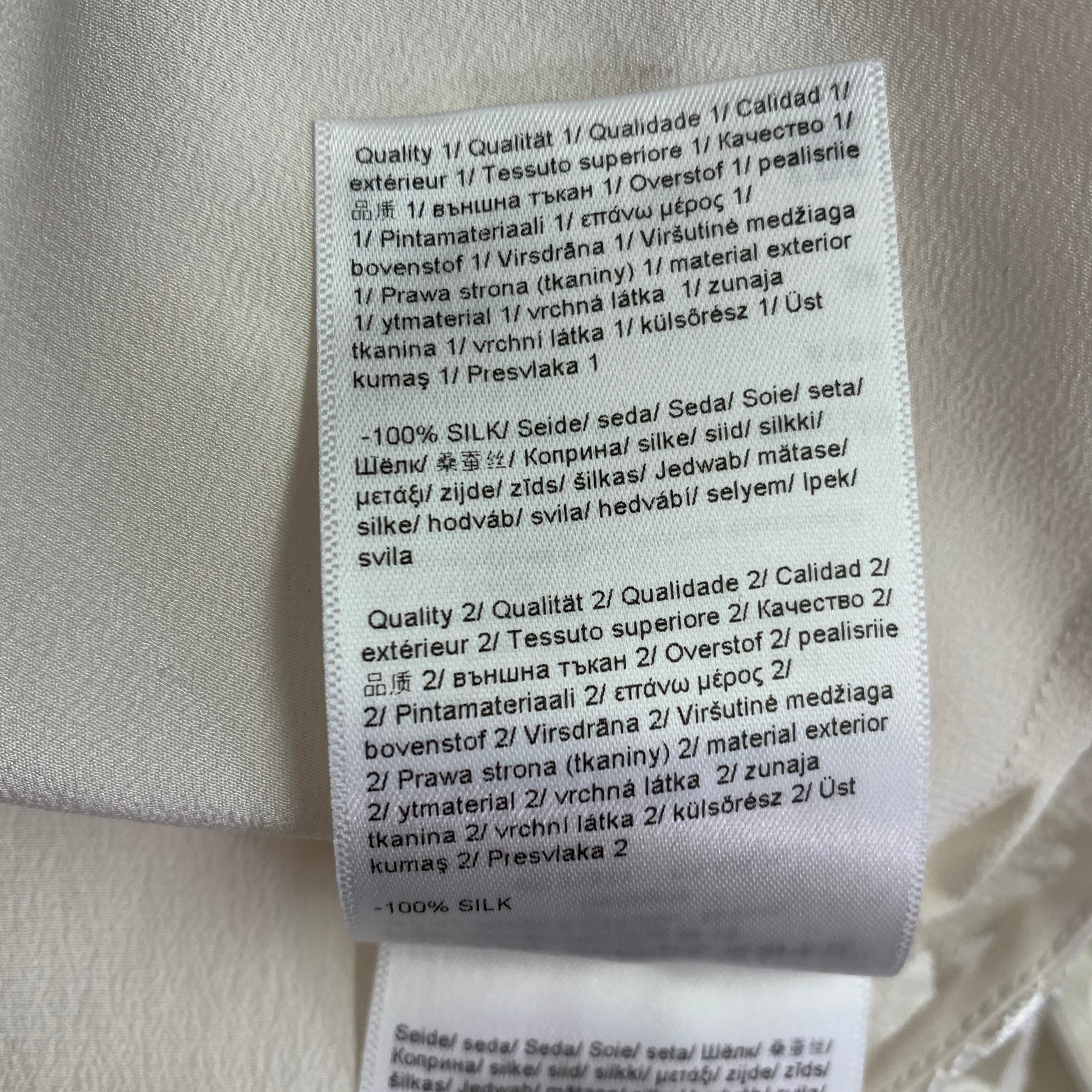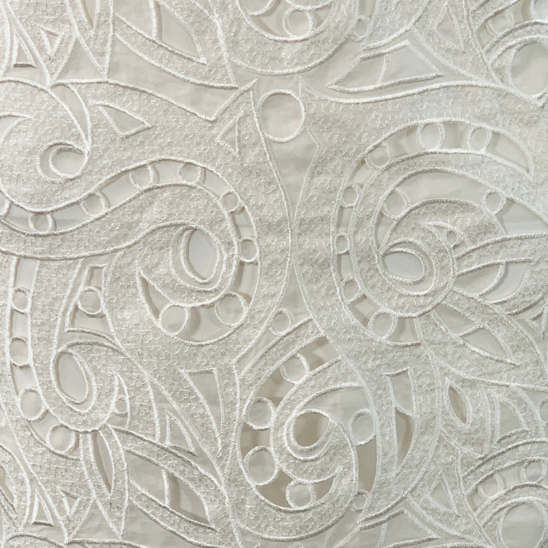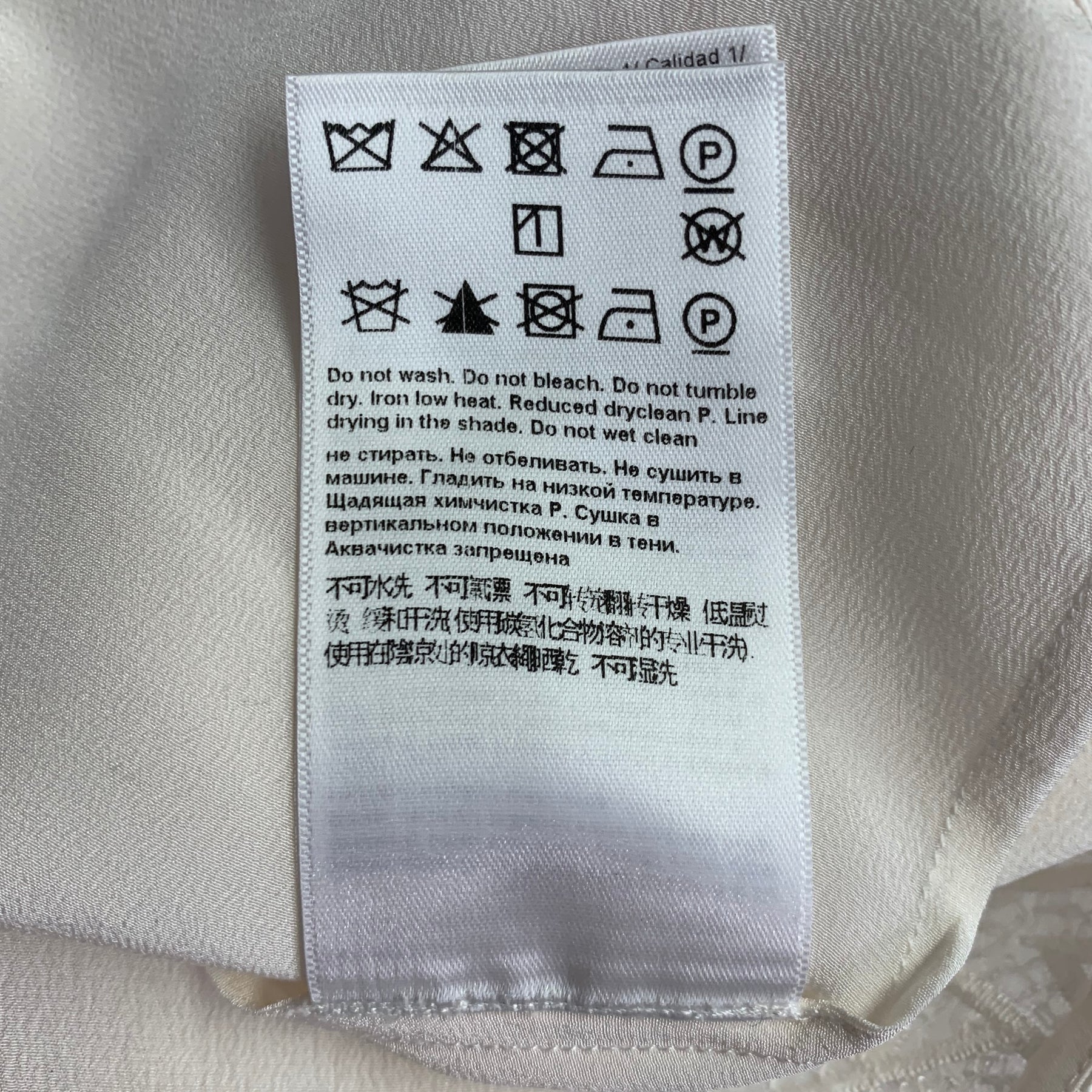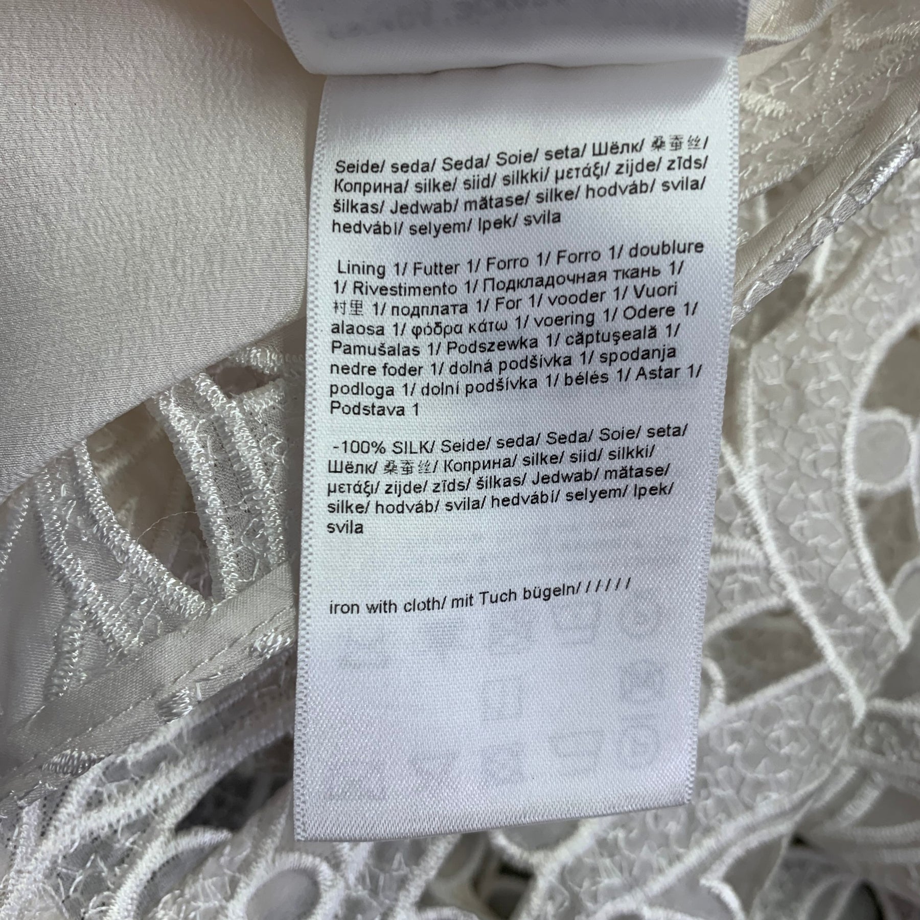 ESCADA shift dress in an off white silk lace featuring a boat neck, geometric pattern, and back invisible zipper closure.