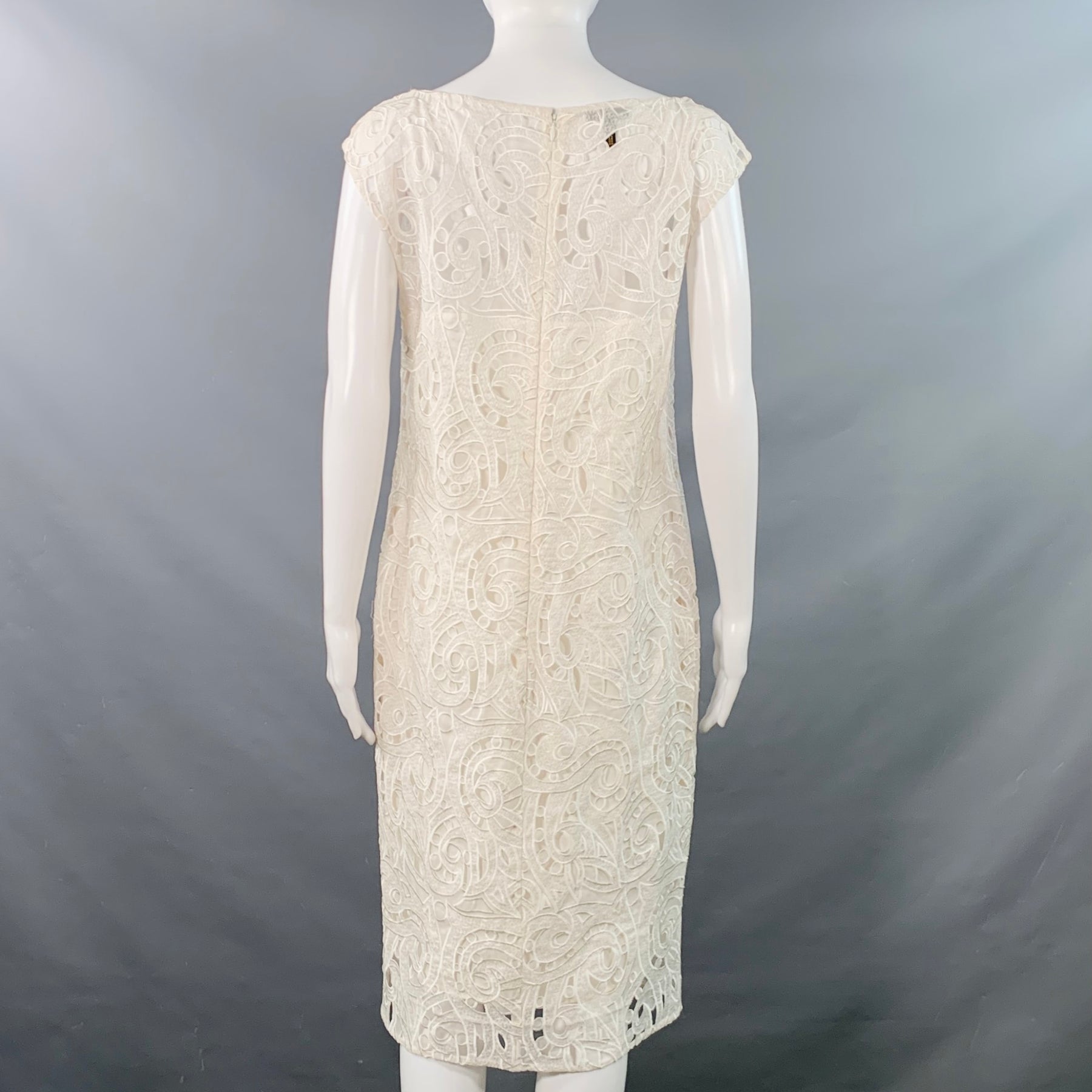 ESCADA Size 6 Off White Silk Lace Boat Neck Sleeveless Shift Dress