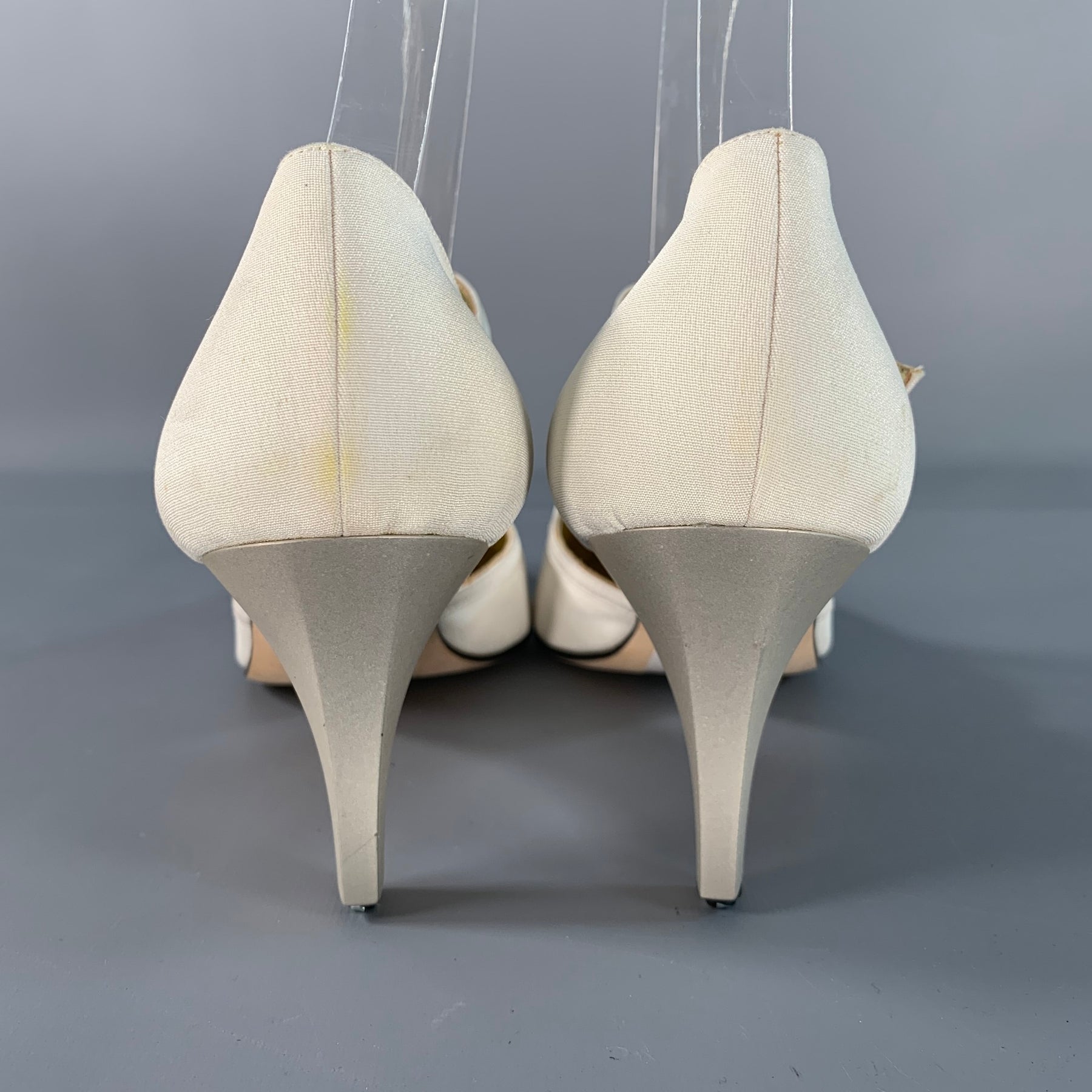 ESCADA Size 8 Ivory Silk Leather T- Strap Pumps