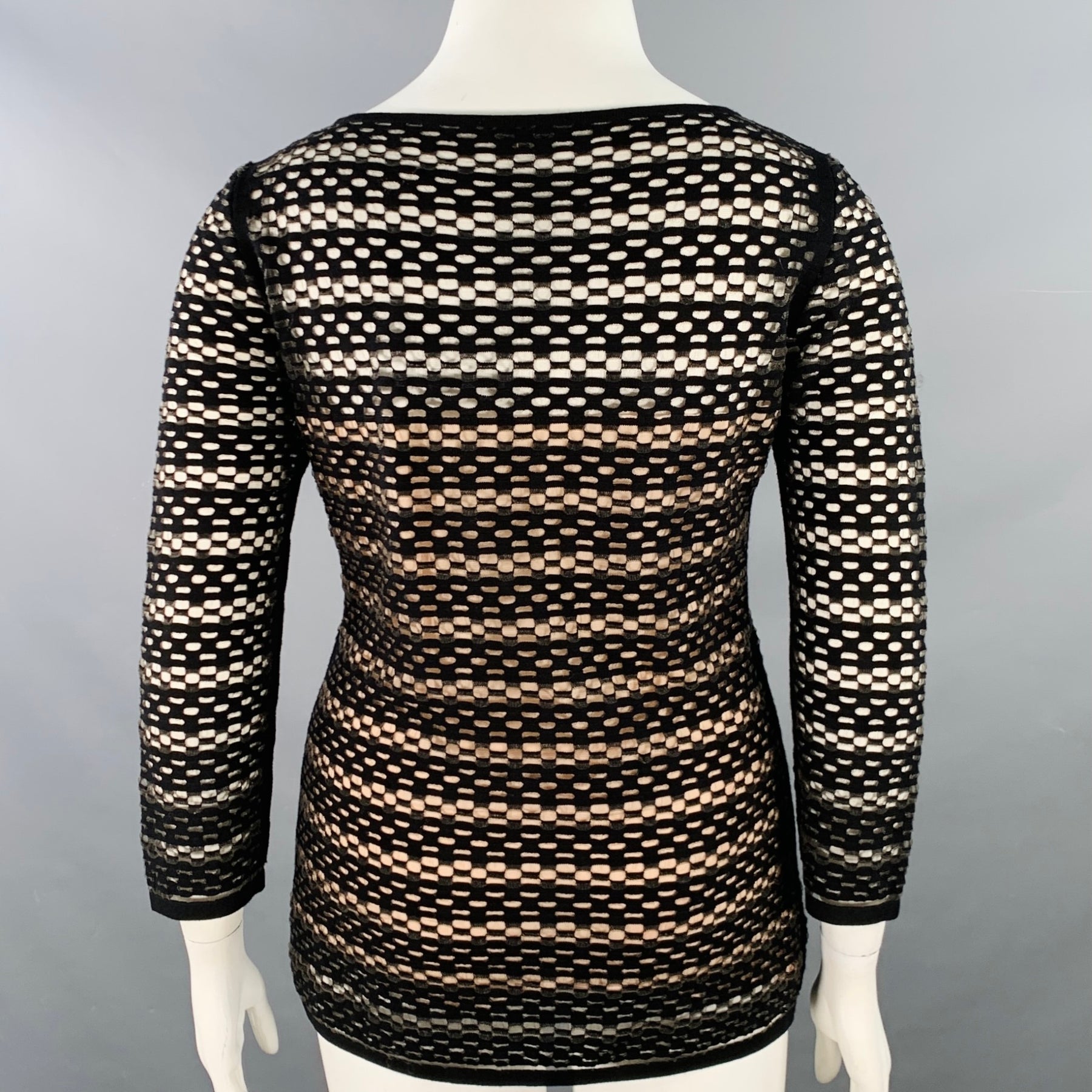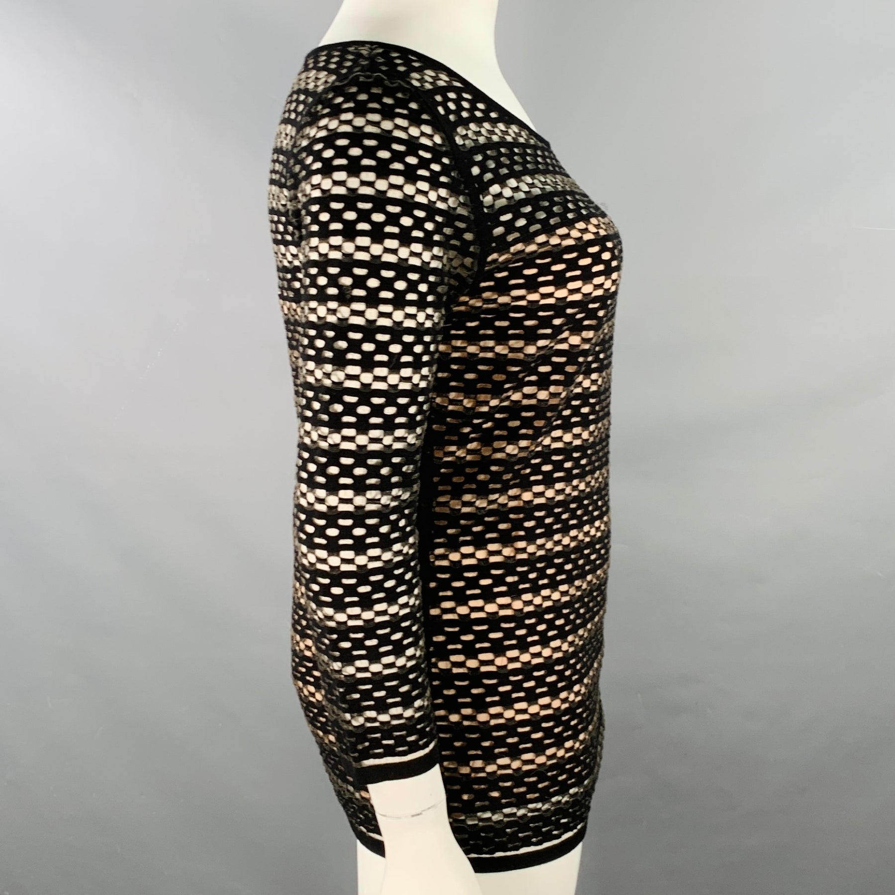 ESCADA Size L Black Nude Viscose Blend Textured Stripe 3/4 Sleeves Scoop Neck Casual Top
