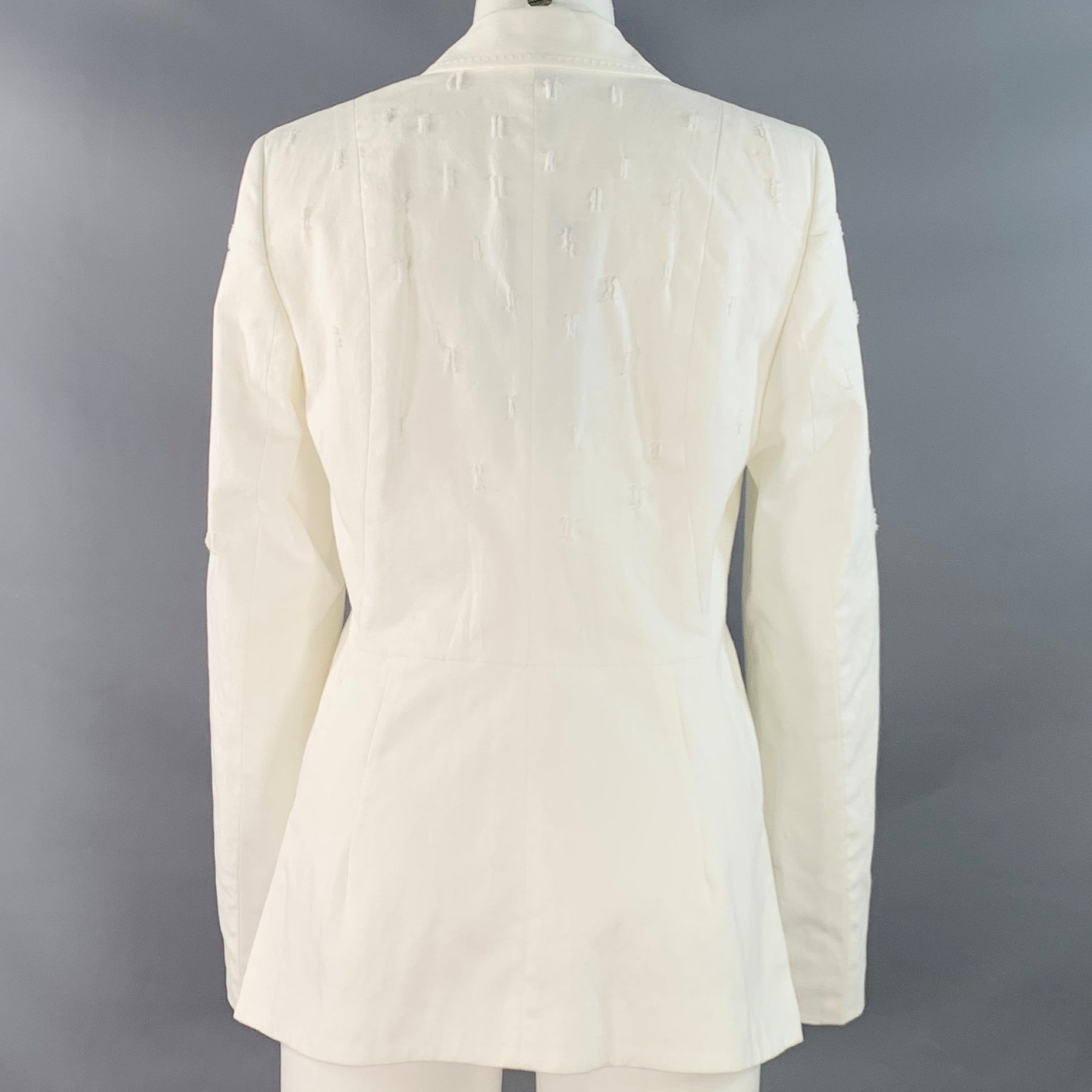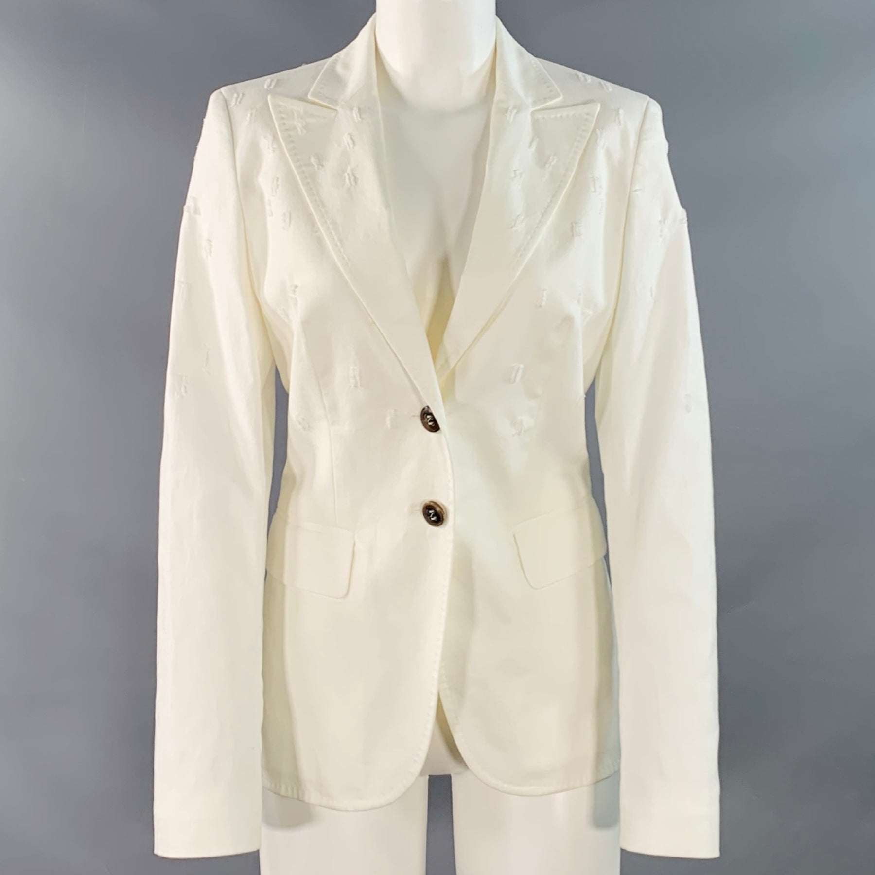 ESCADA Size S White Cotton Blend Textured Peak Lapel Jacket Blazer