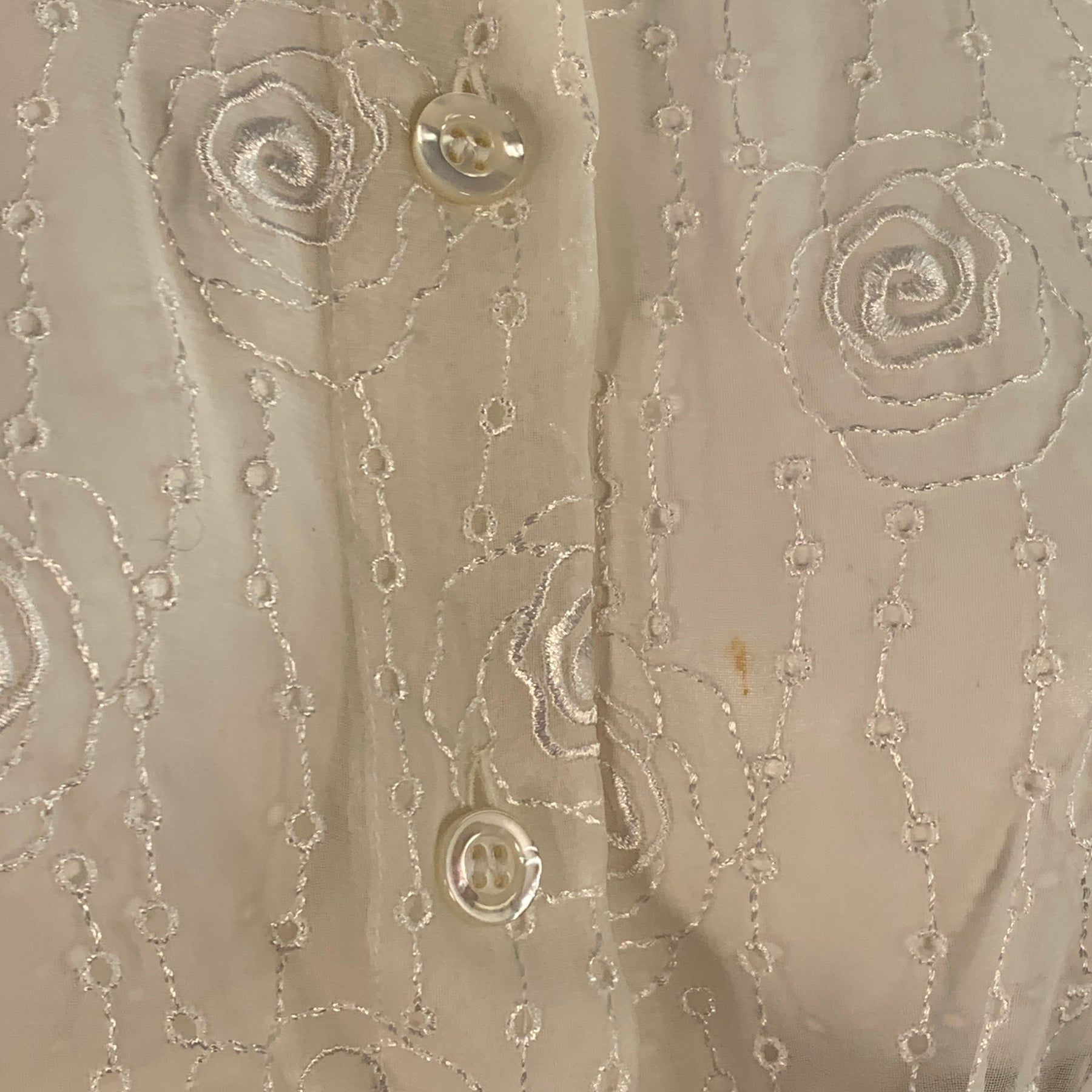 ESCADA Size XS Cream Polyester Embroidered Floral Eyelet Button Up Shirt