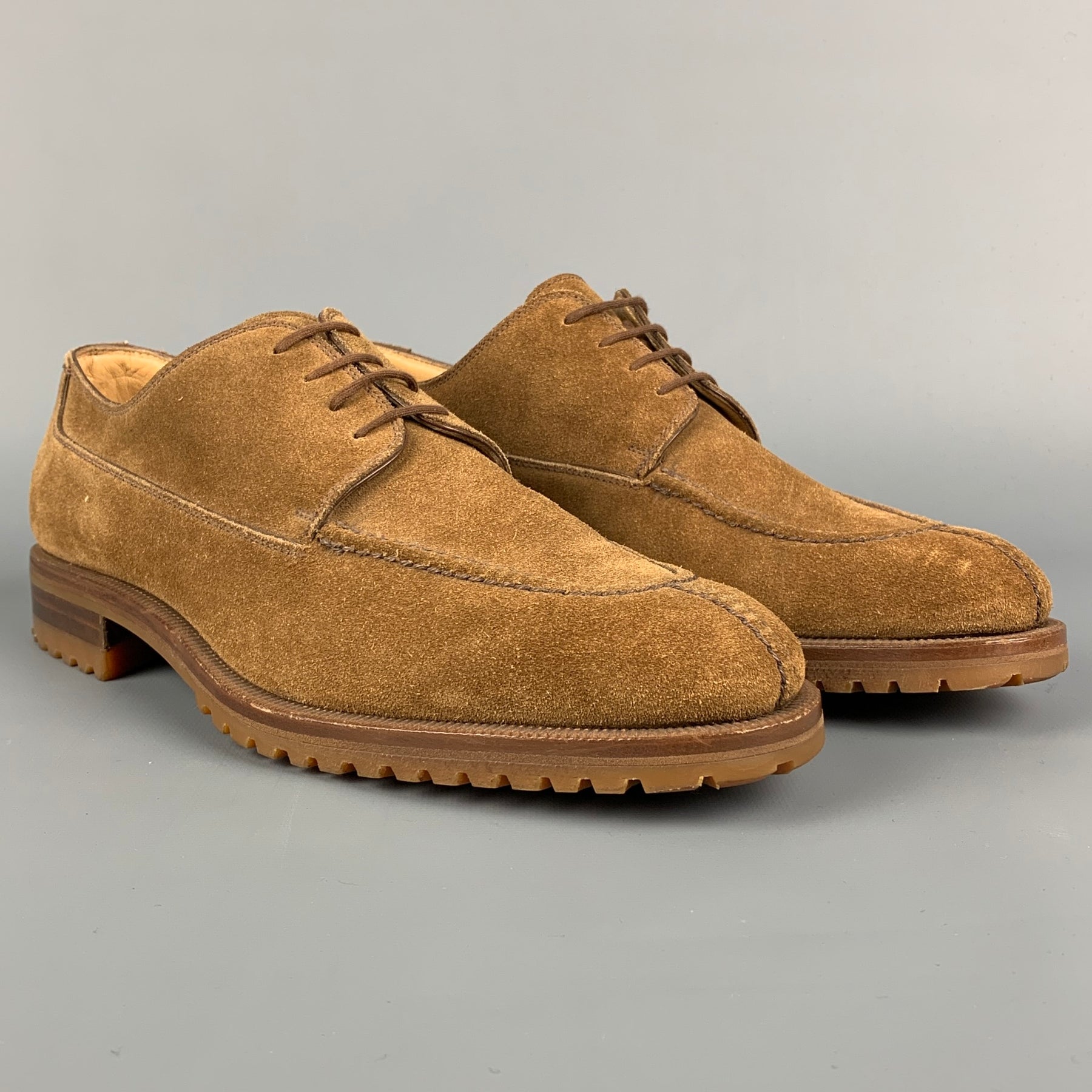 GRAVATI for ARTHUR BEREN shoes comes in a tan textured suede featuring top stitching, rubber sole, and a lace up closure. Made in Italy.