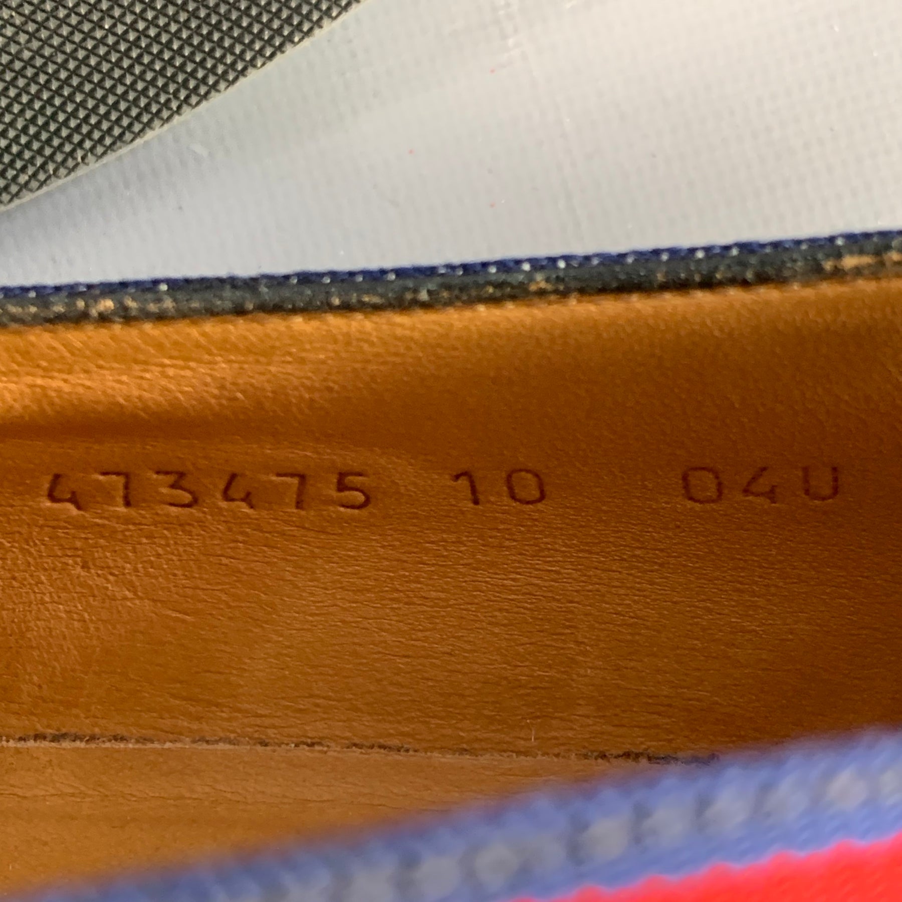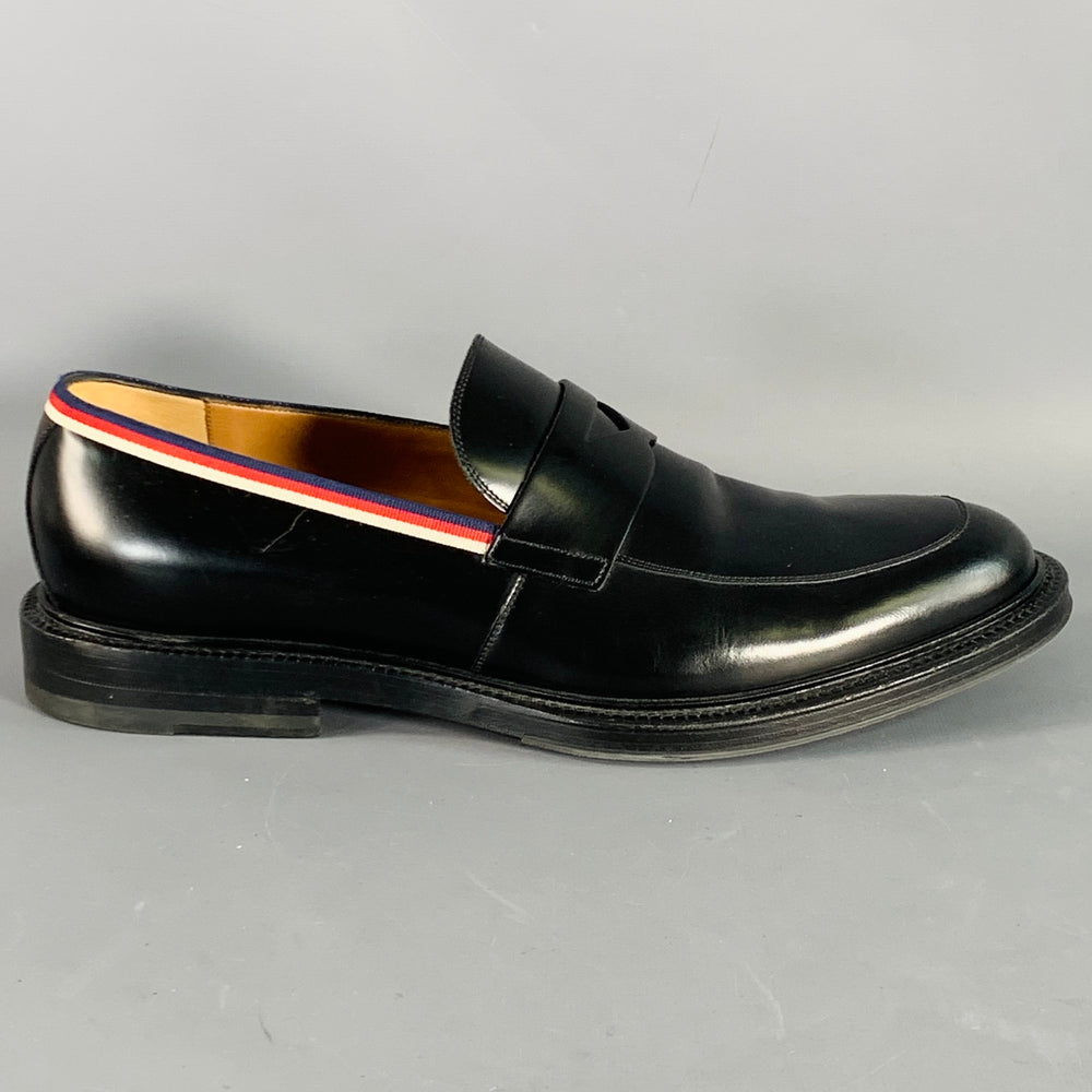 GUCCI Size 10.5 Black Red Blue Contrast Trim Leather Penny Loafers