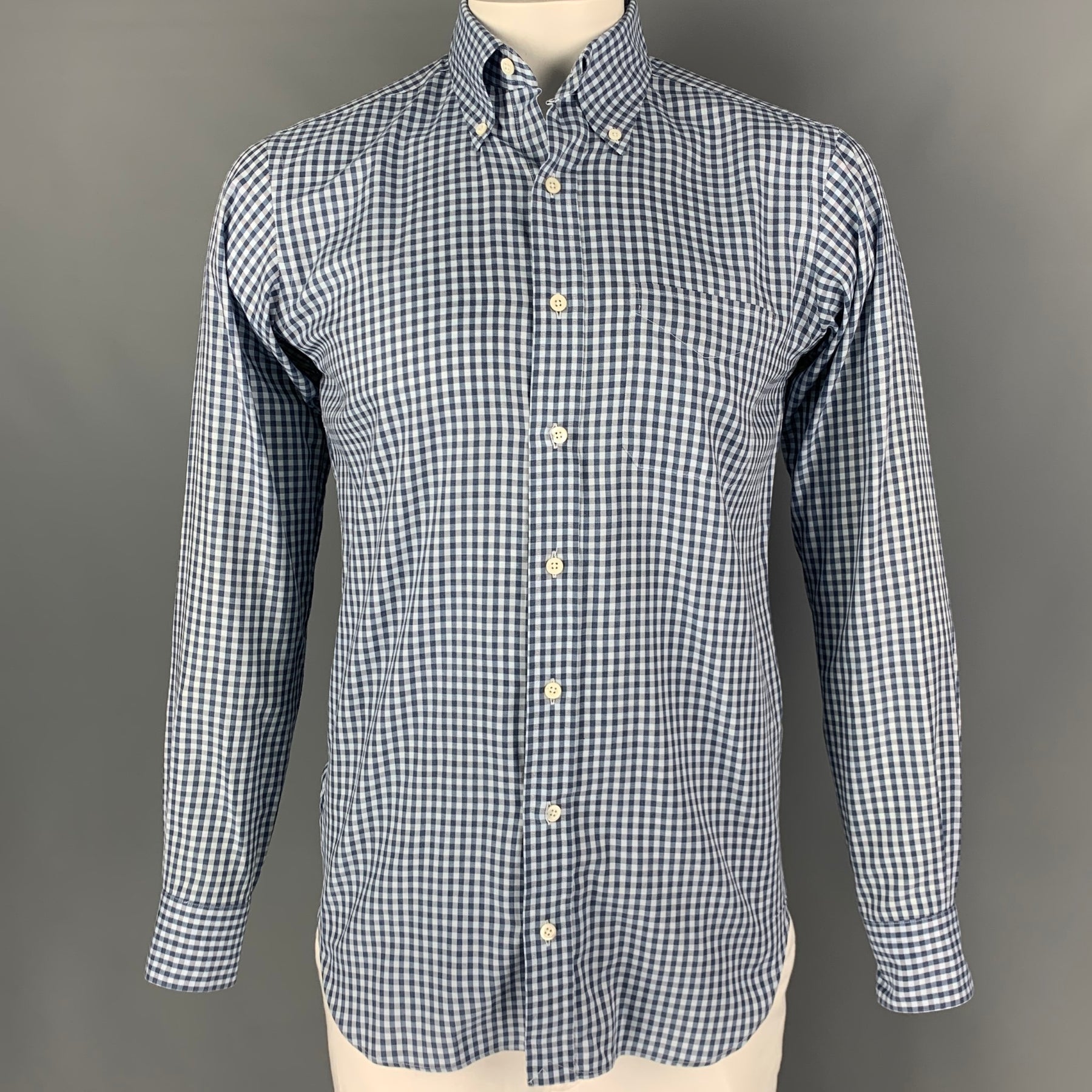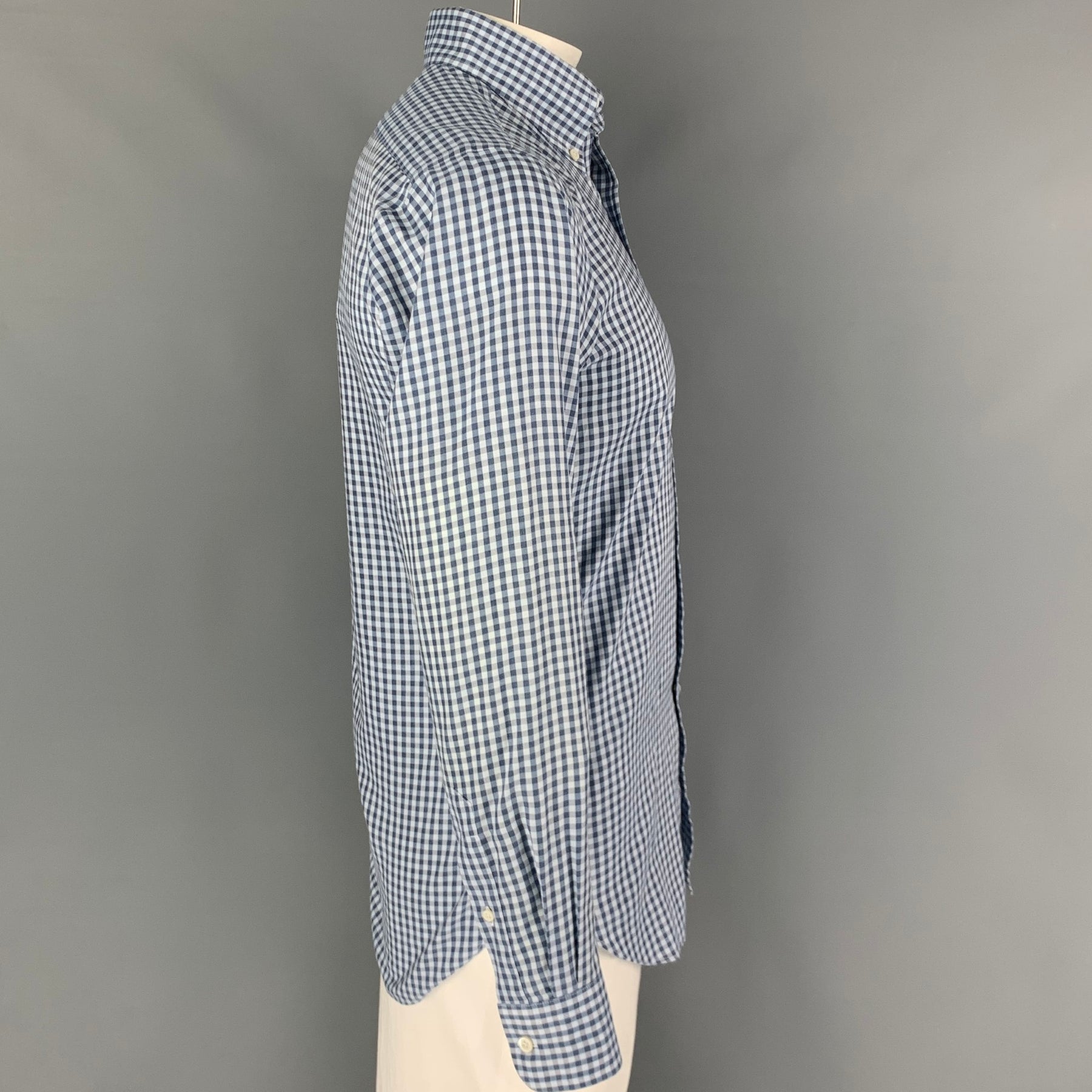 HAMILTON Size L Blue & Light Blue Gingham Long Sleeve Shirt