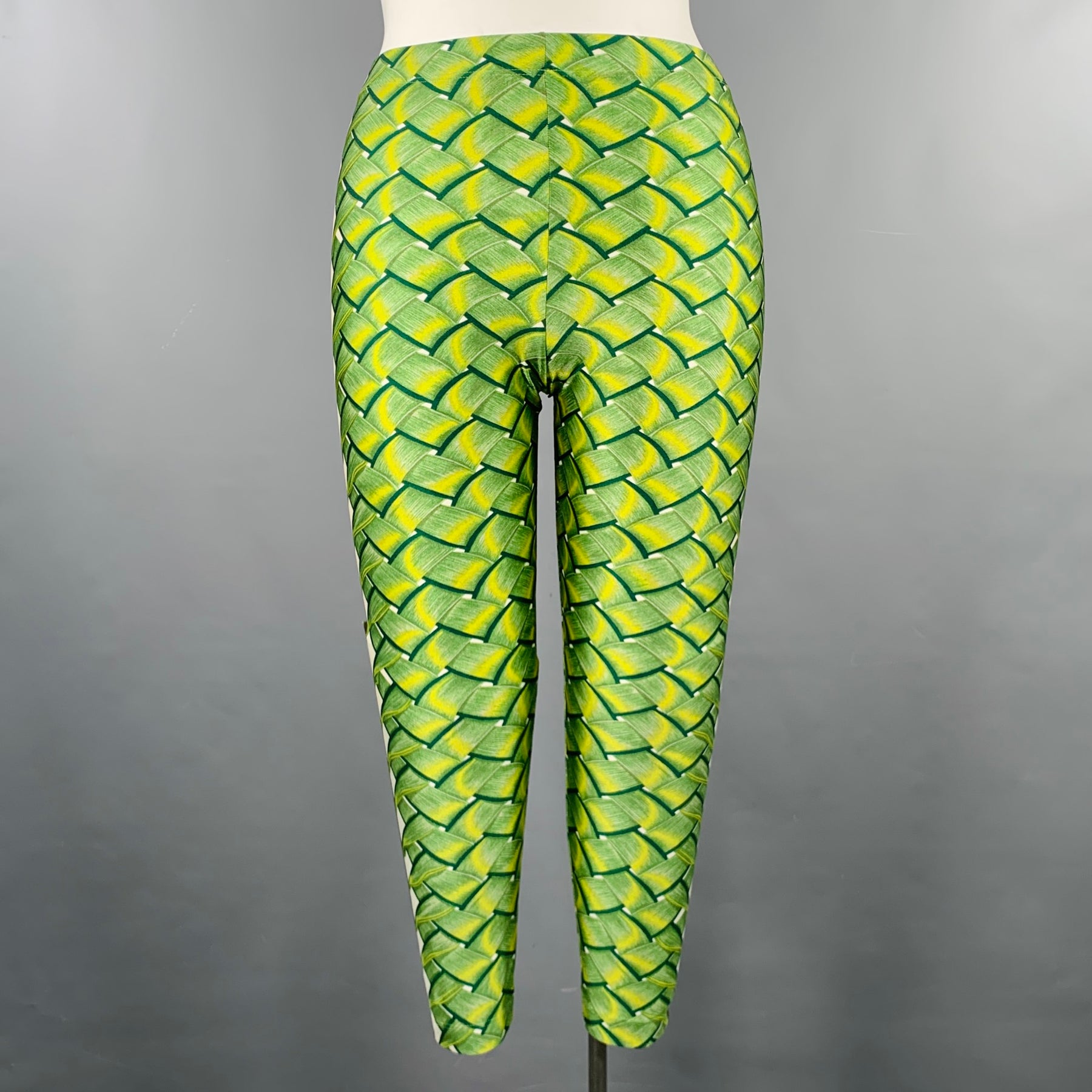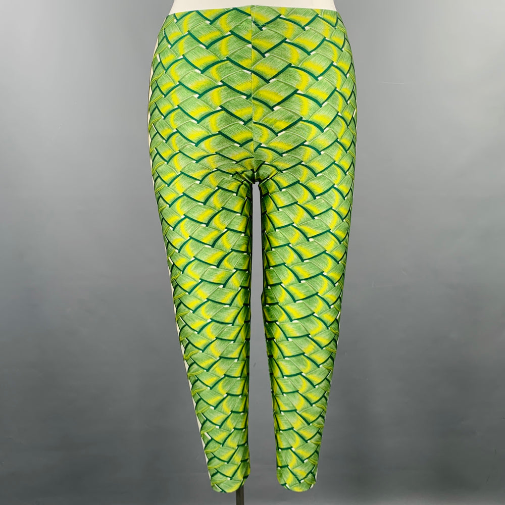 HERMES Size 10 Green Yellow Lycra Woven Elastic Waistband Leggings