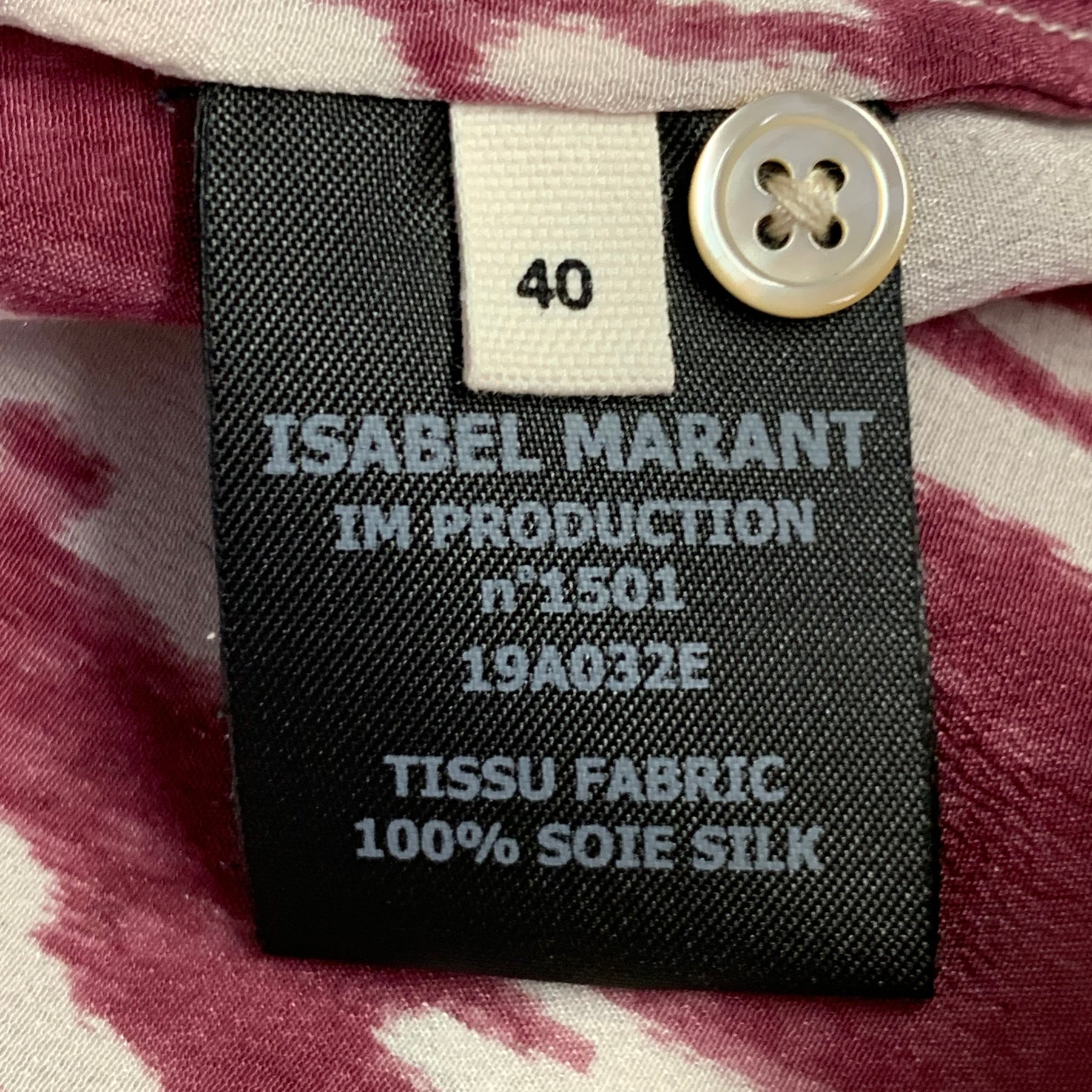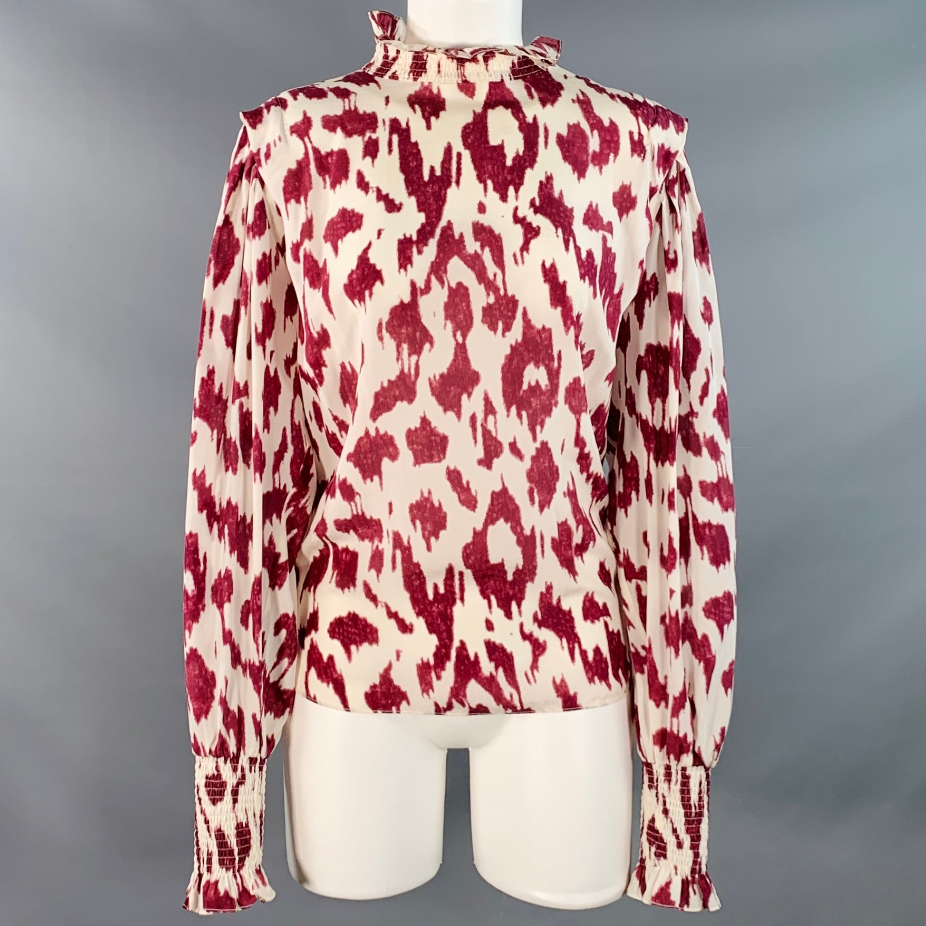 ISABEL MARANT Size M Yoshi White Raspberry Silk Animal Print Ruffle Blouse