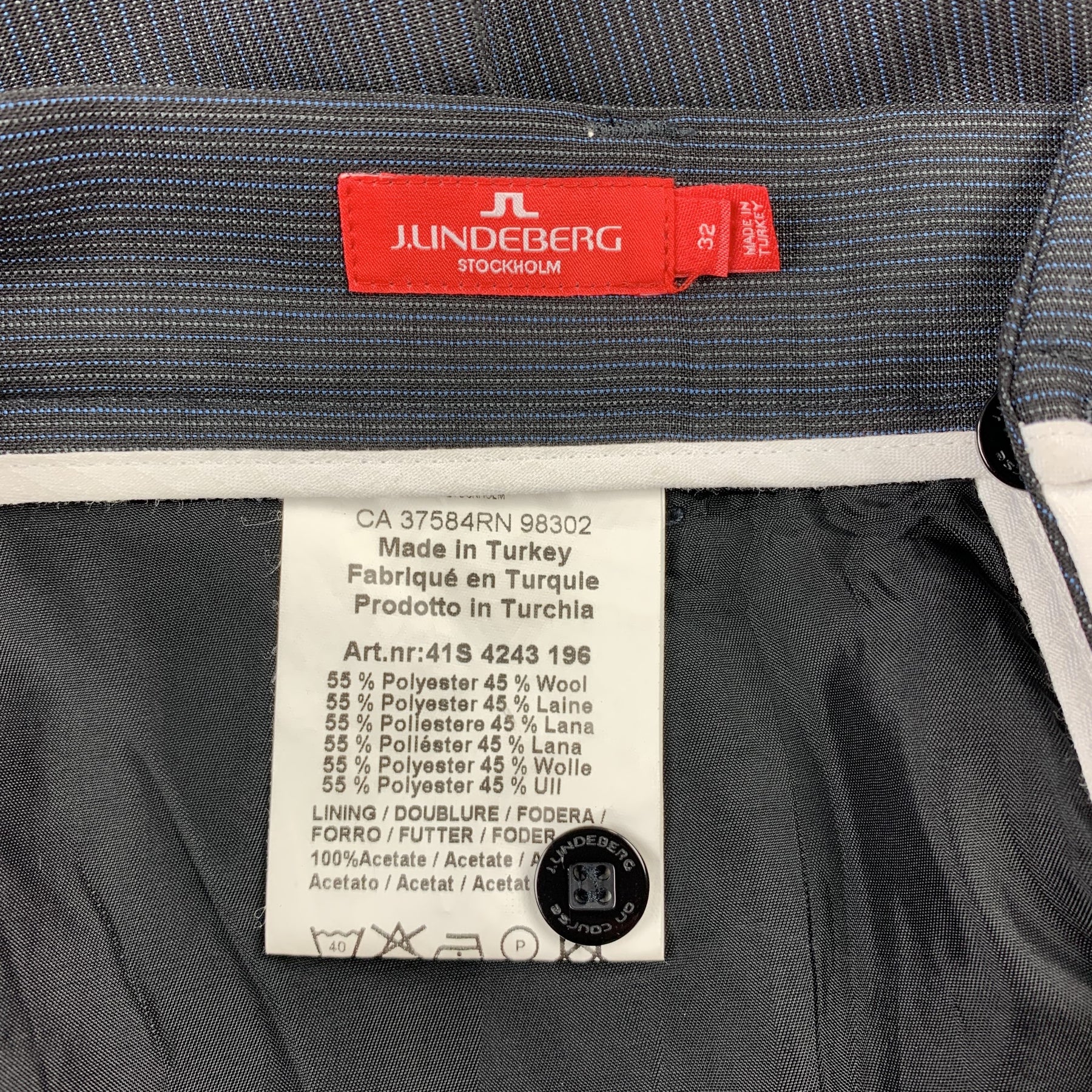 J. LINDEBERG Size 32 Black Pinstripe Wool Blend Zip Fly Dress Pants