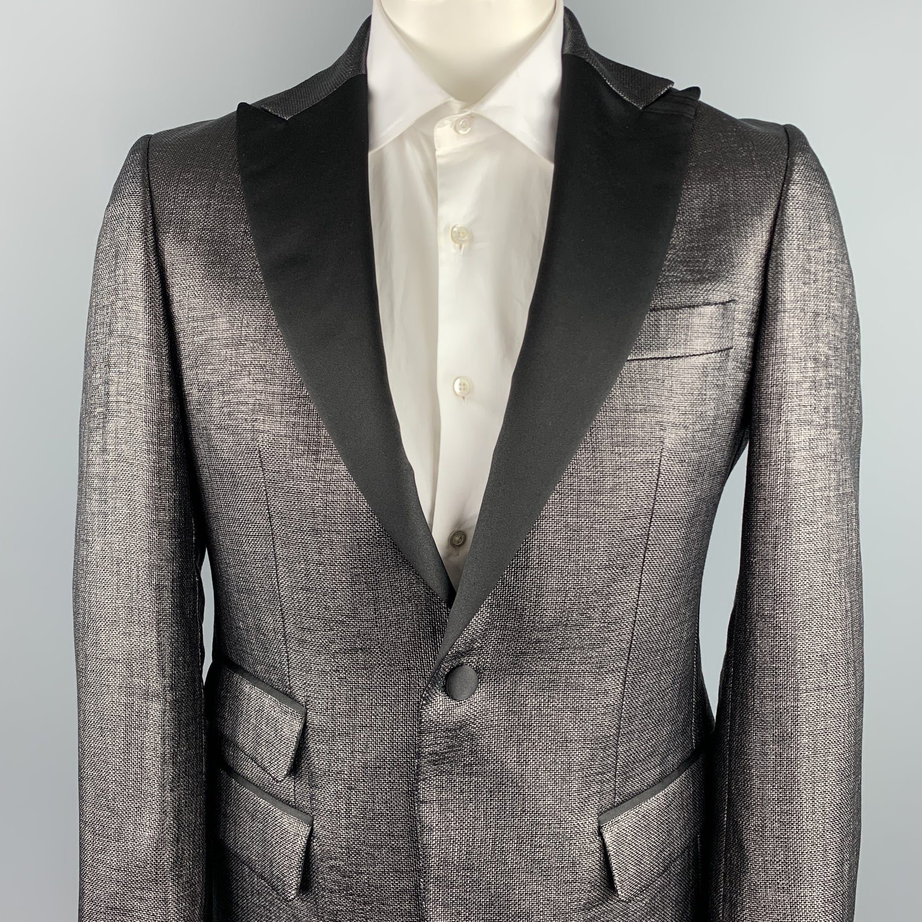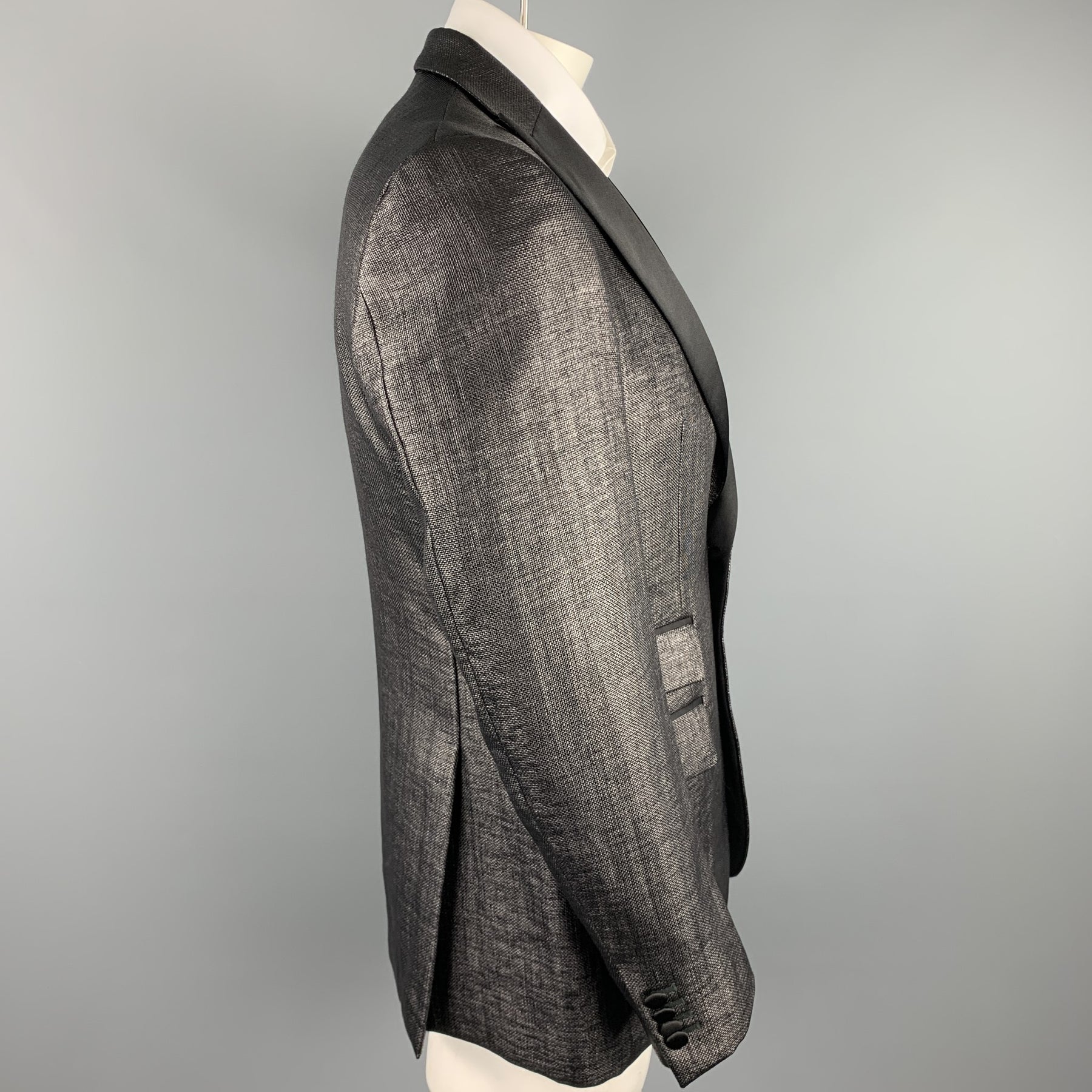 J. LINDEBERG sport coat comes in a black woven polyamide / cotton with a full liner featuring a peak lapel, flap pockets, and a single button closure. Made in Italy.