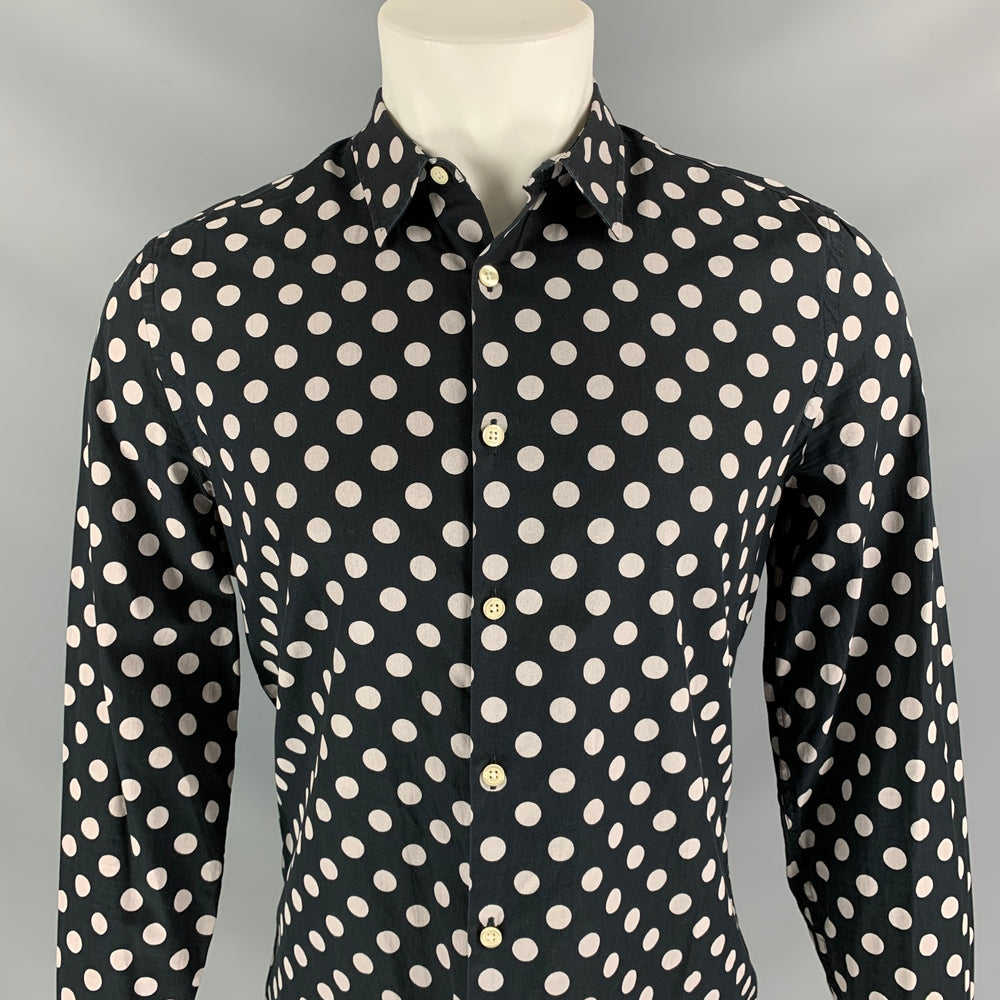 J. LINDEBERG Size M Polka Dot Cotton Button down Black Long Sleeve Shirt