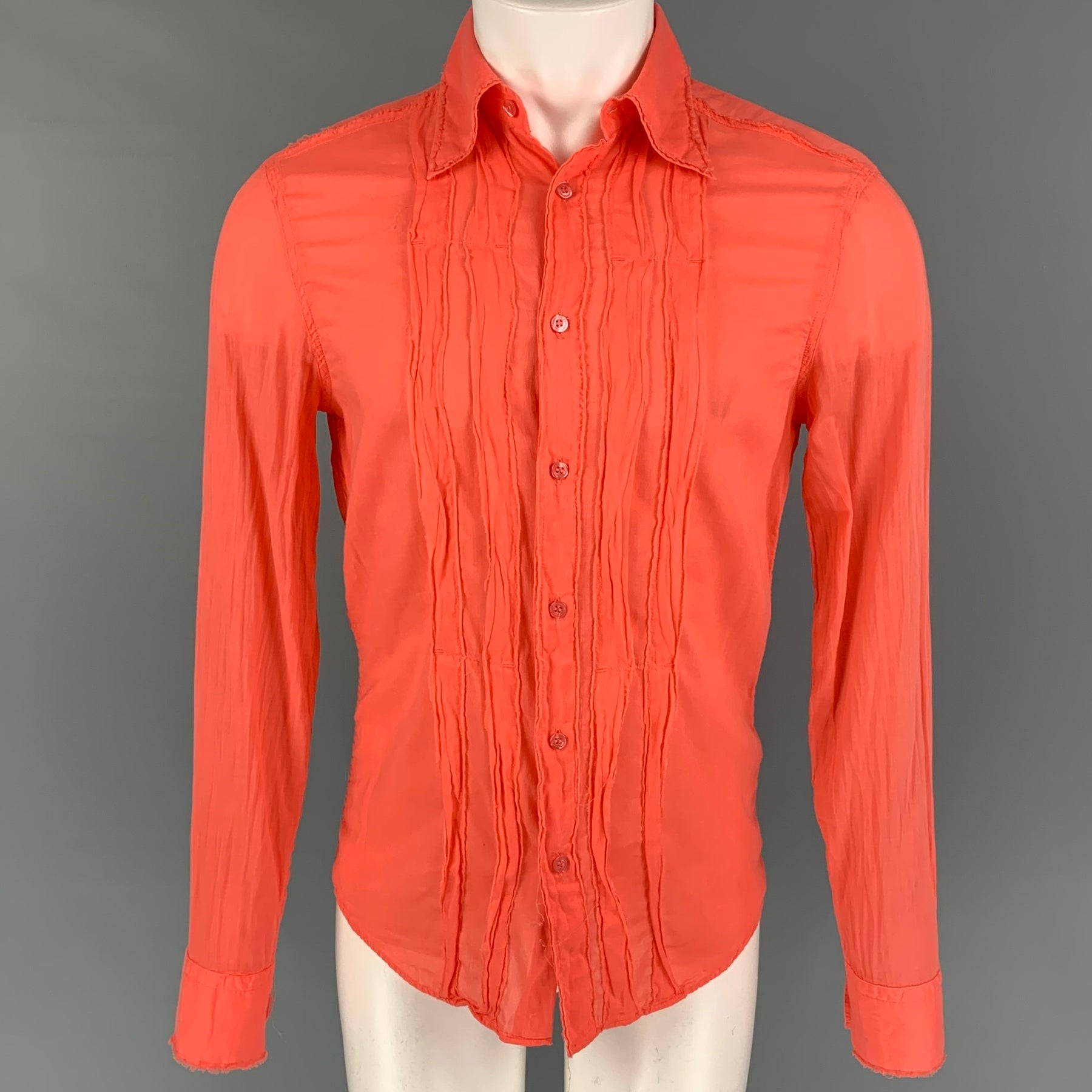 J. LINDEBERG Size S Orange Pleated Cotton Button Up Long Sleeve Shirt