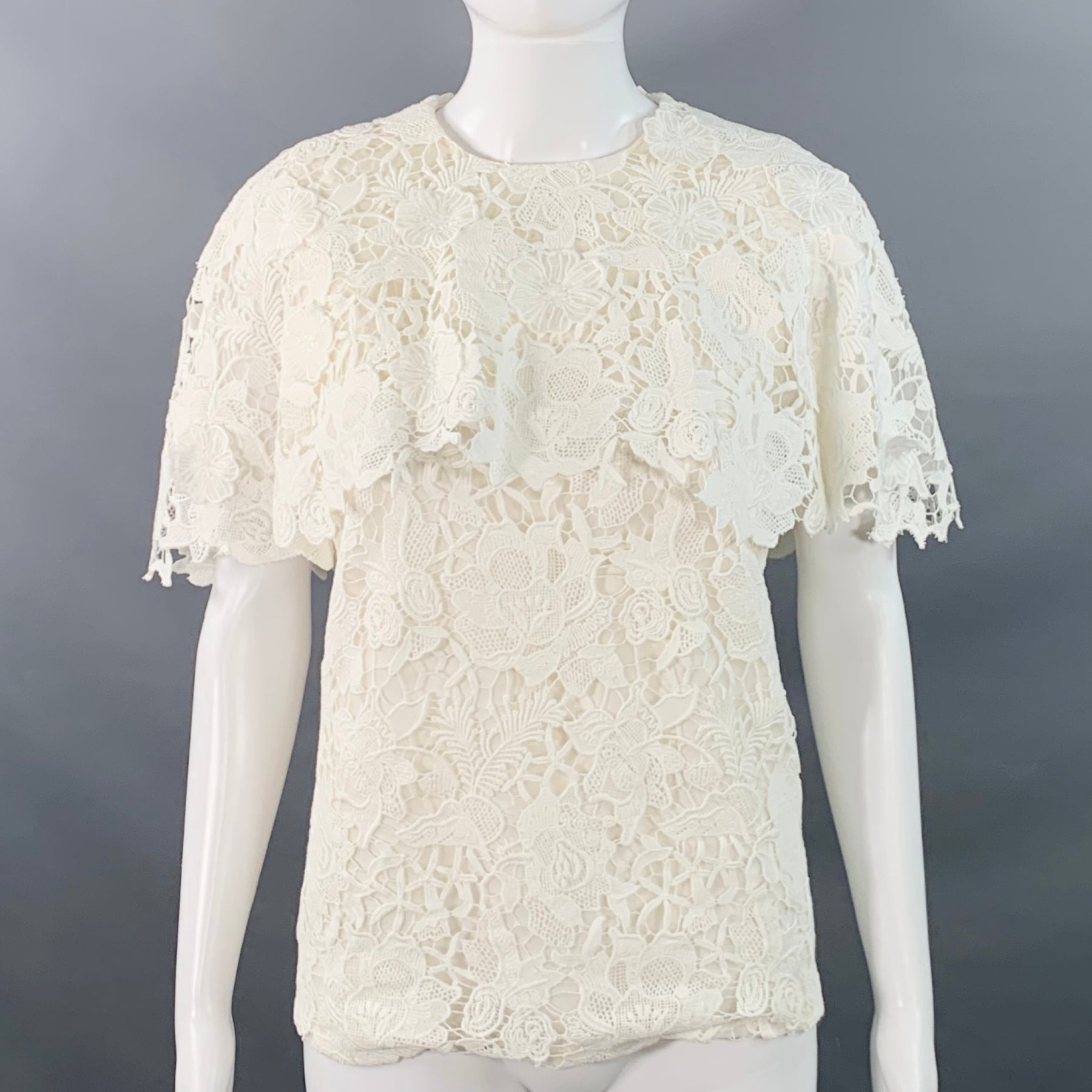 JASON WU COLLECTION Size 0 White Guipure Cotton Lace Overlay Blouse