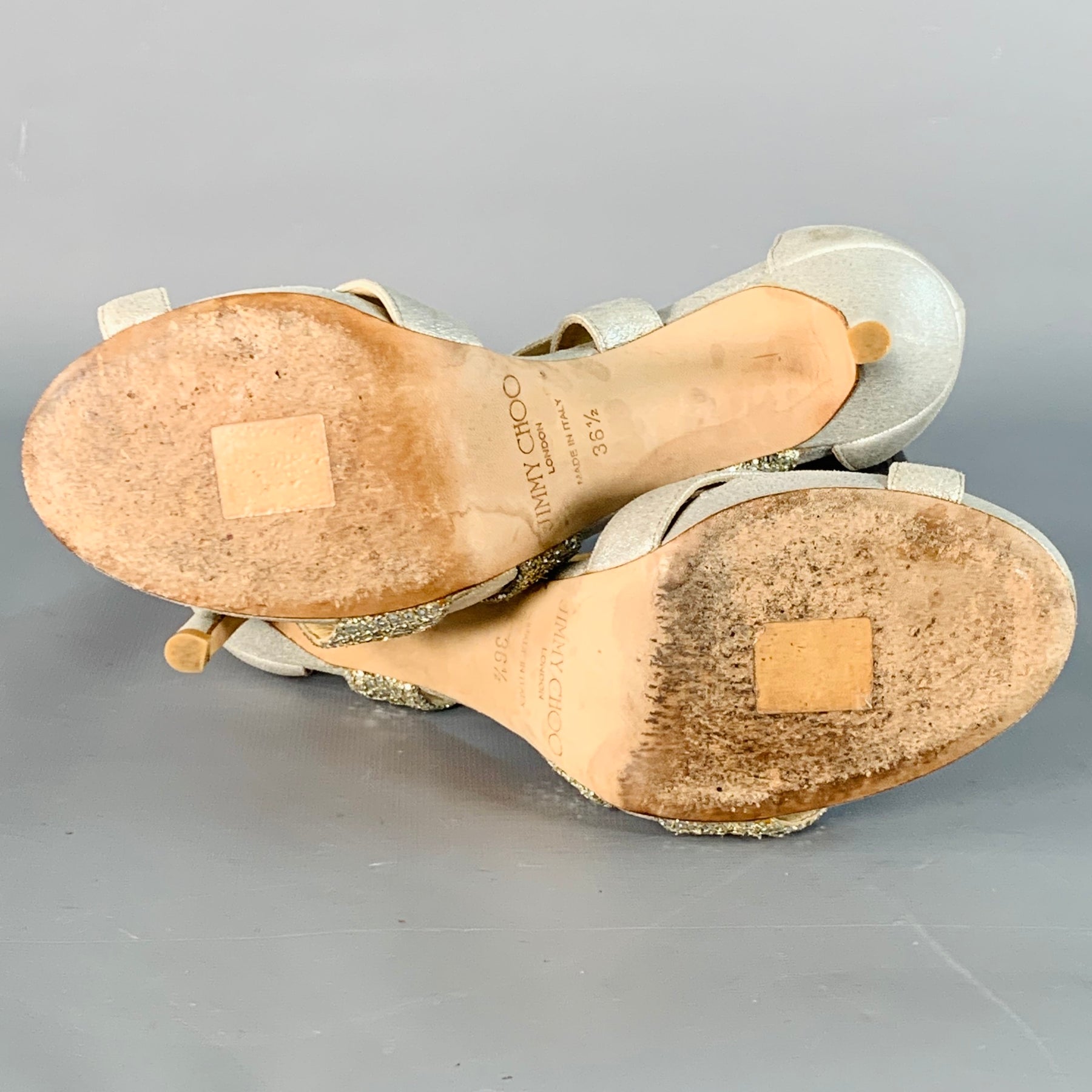 JIMMY CHOO Size 6.5 Grey Silver Glittery Leather Platform Stiletto Sandals