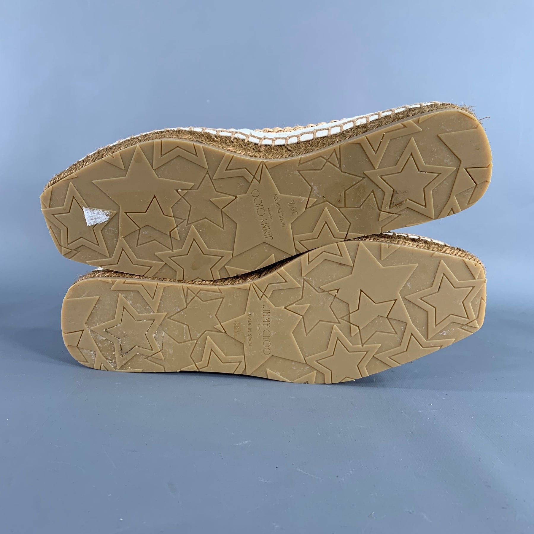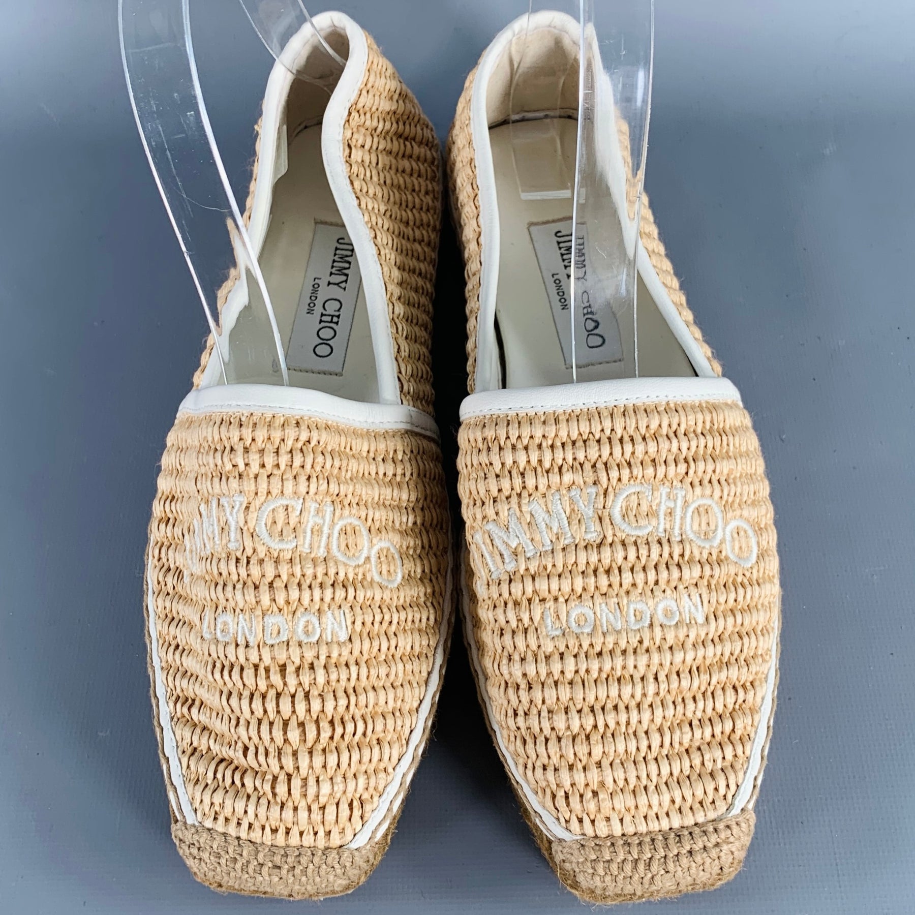 JIMMY CHOO Size 6.5 White Natural Straw Woven Espadrille Flats
