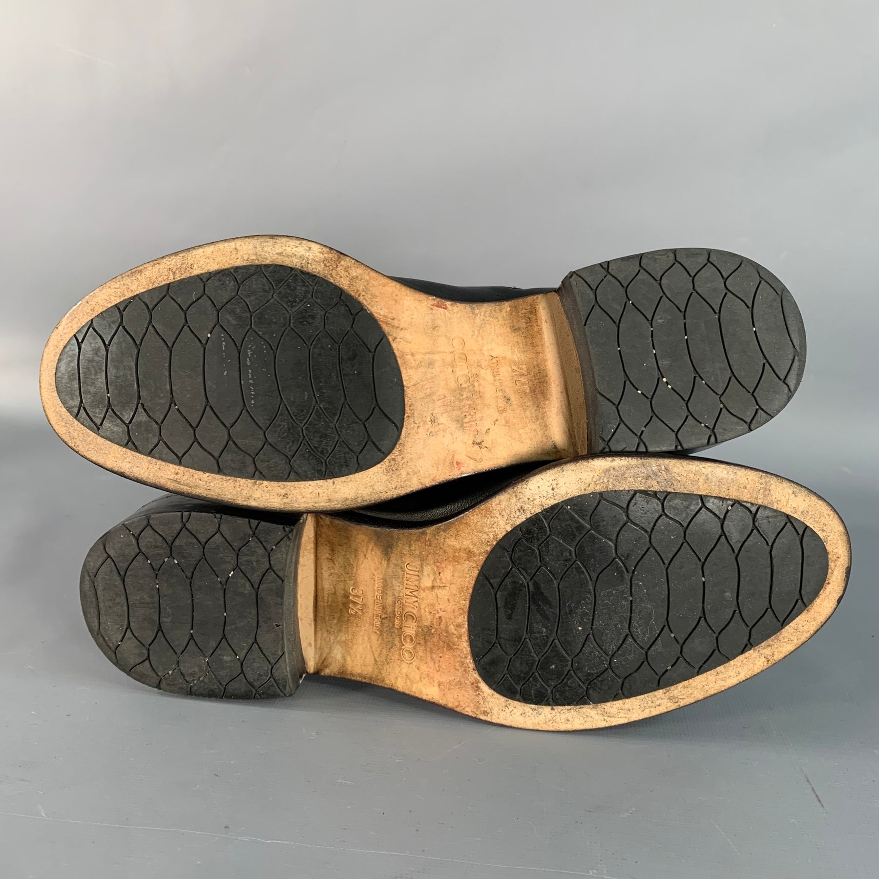 JIMMY CHOO Size 7.5 Black Leather Studded Belted Side Zipper Ankle Boots