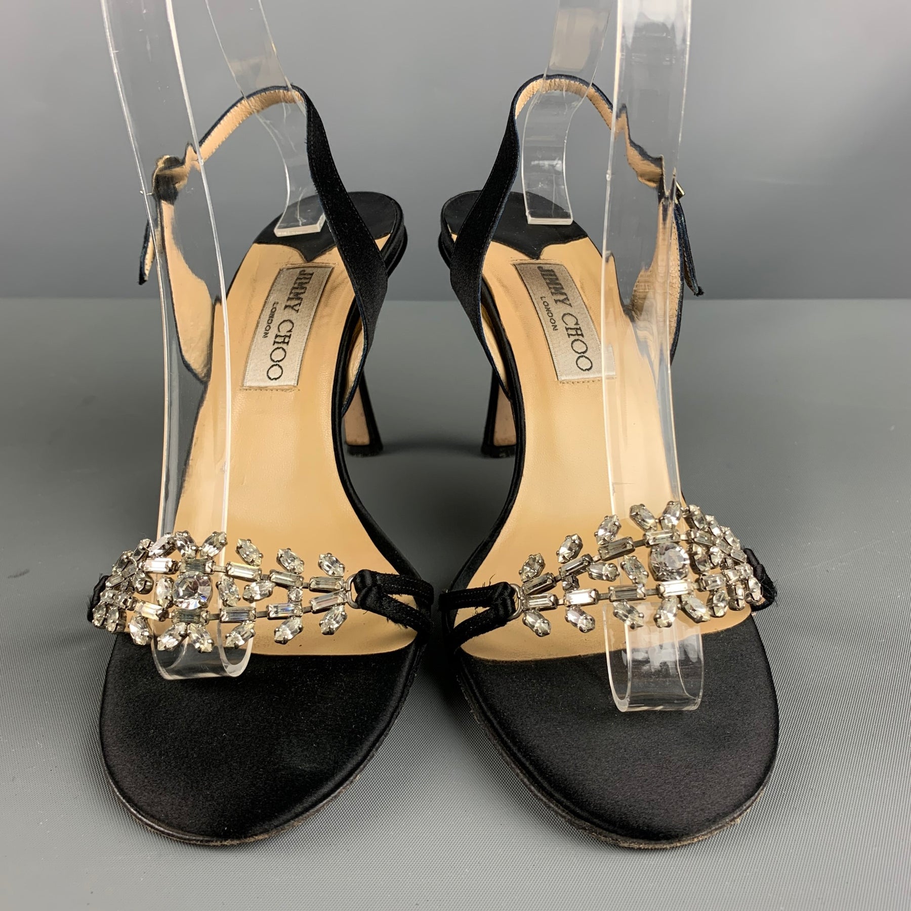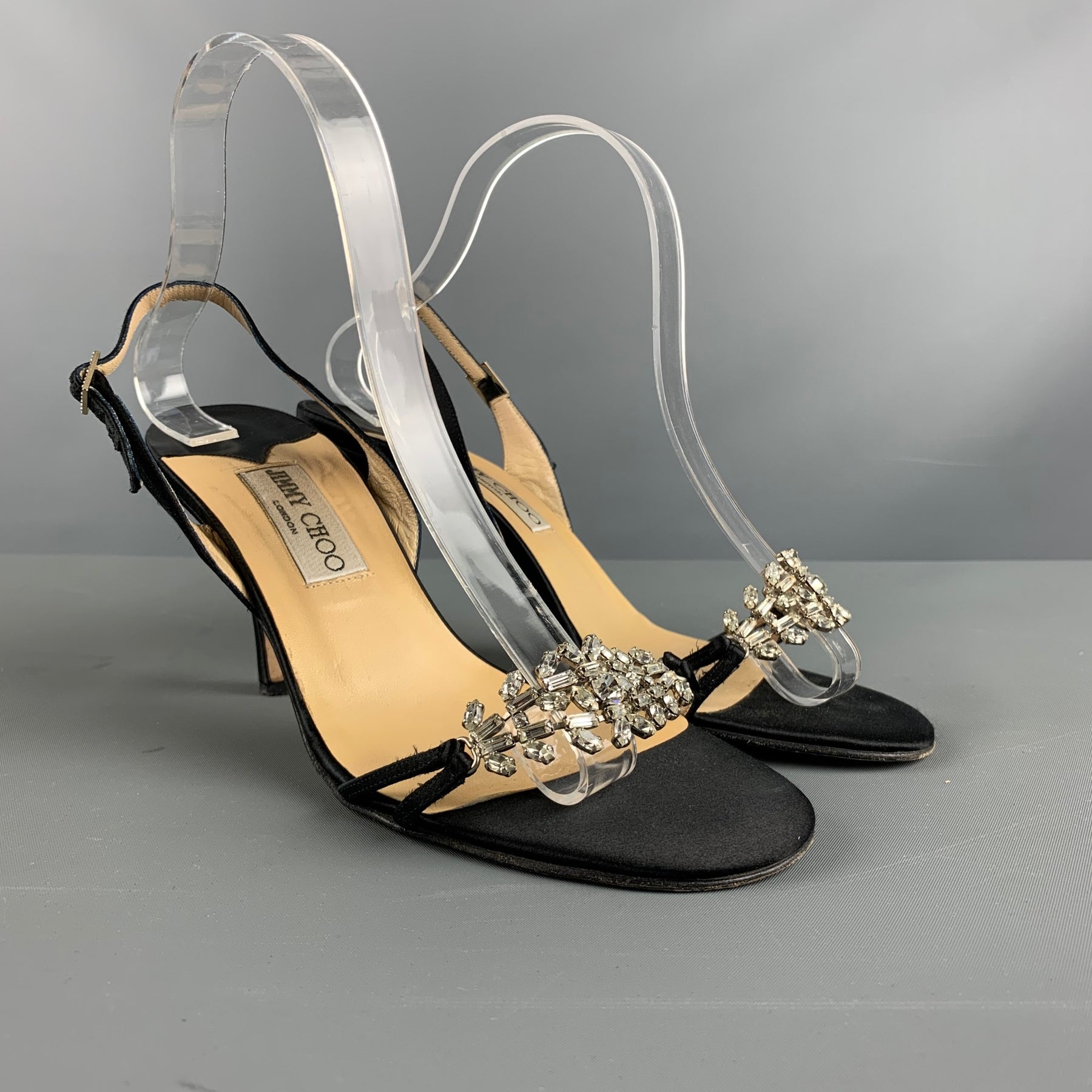 JIMMY CHOO Size 8.5 Black Satin Embellishment Slingback Sandals