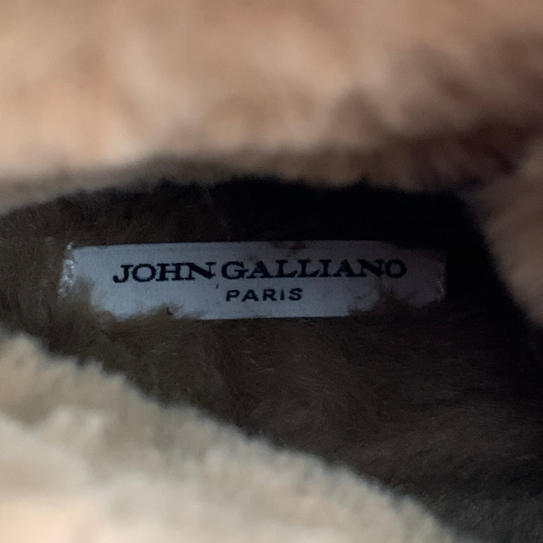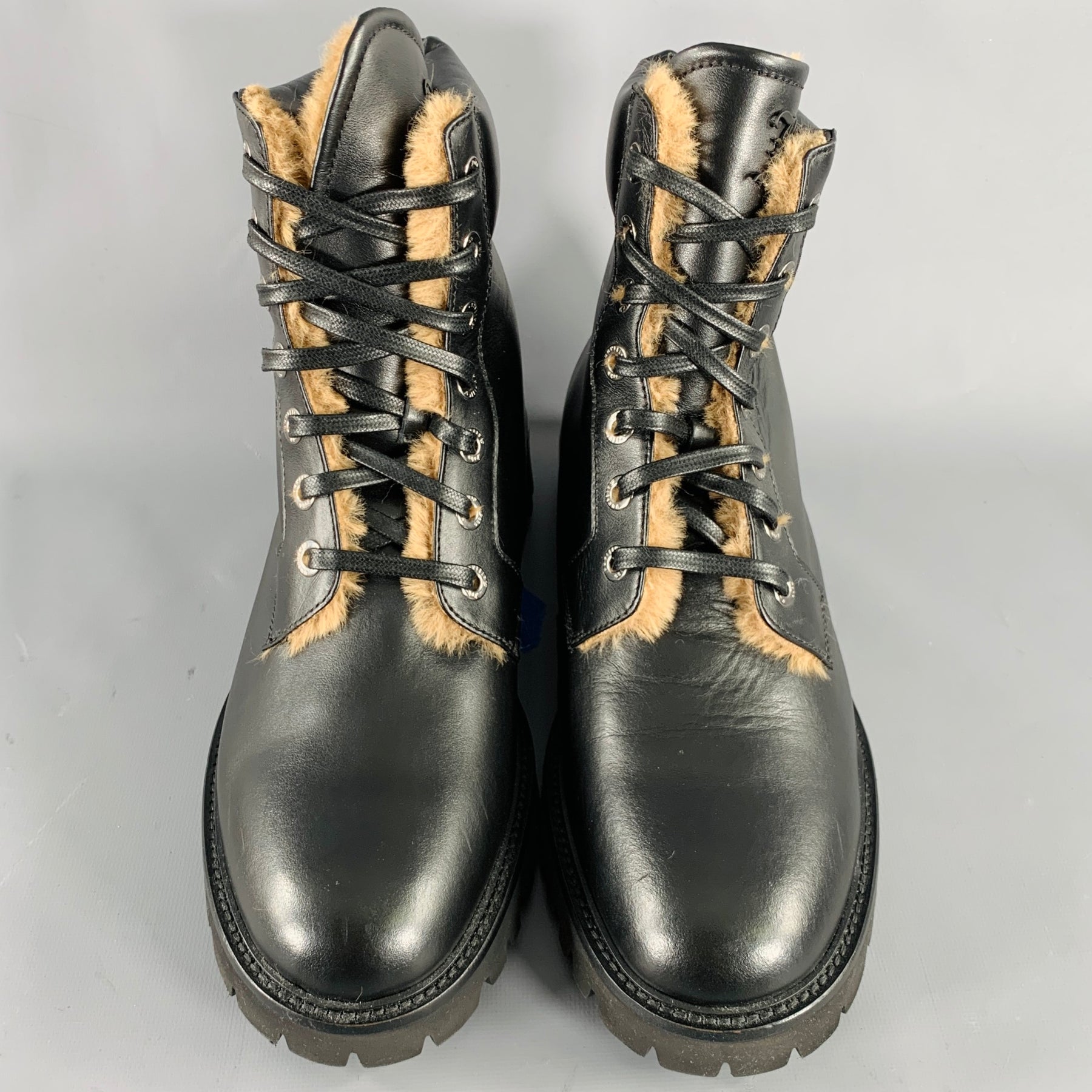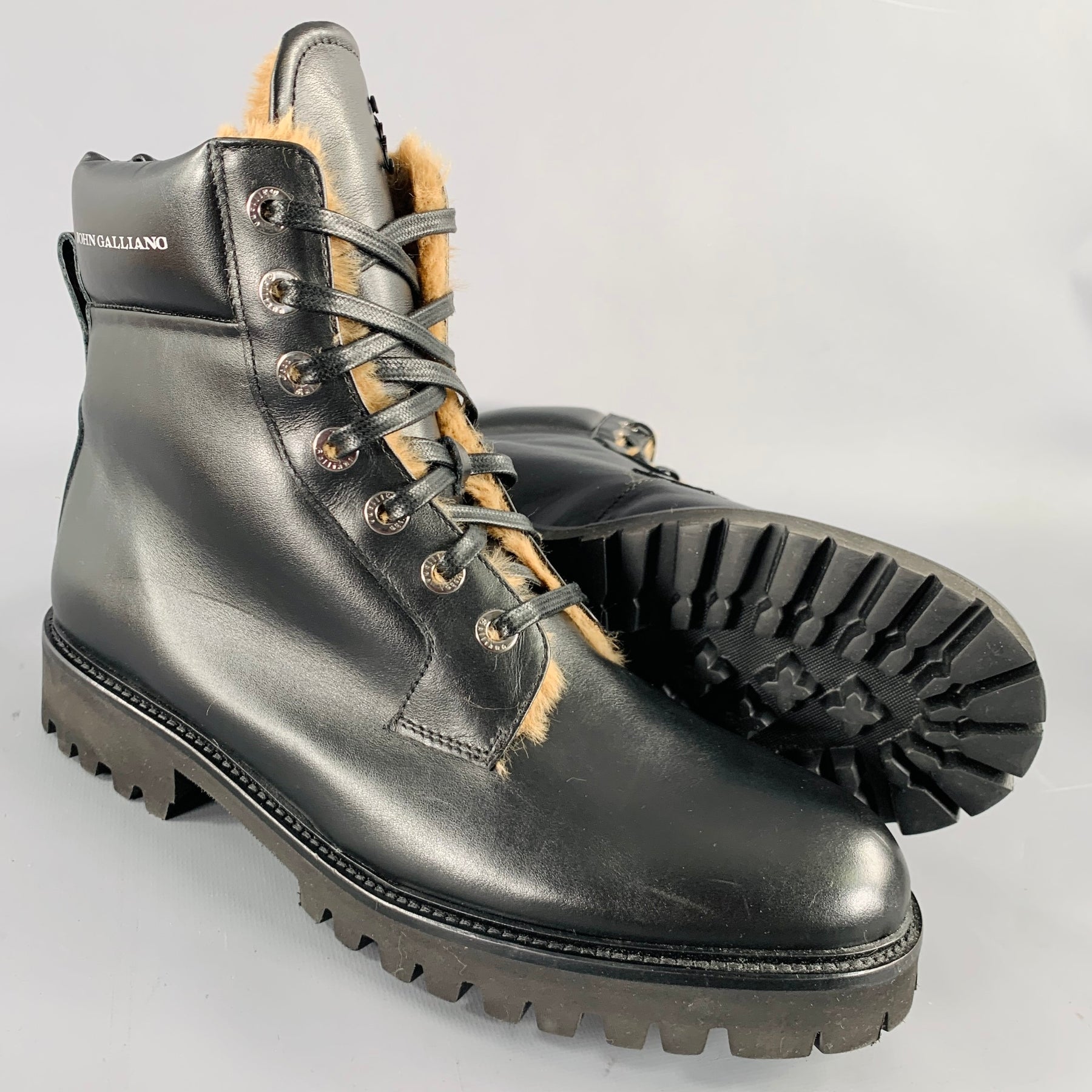 JOHN GALLIANO boots in a black leather featuring a combat style, a cozy "fur"-lined design, and lace-up closure. Made in Italy.